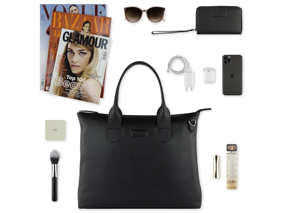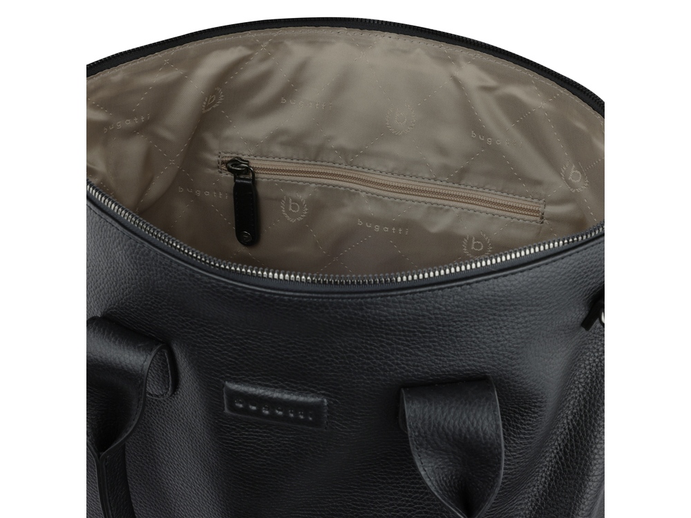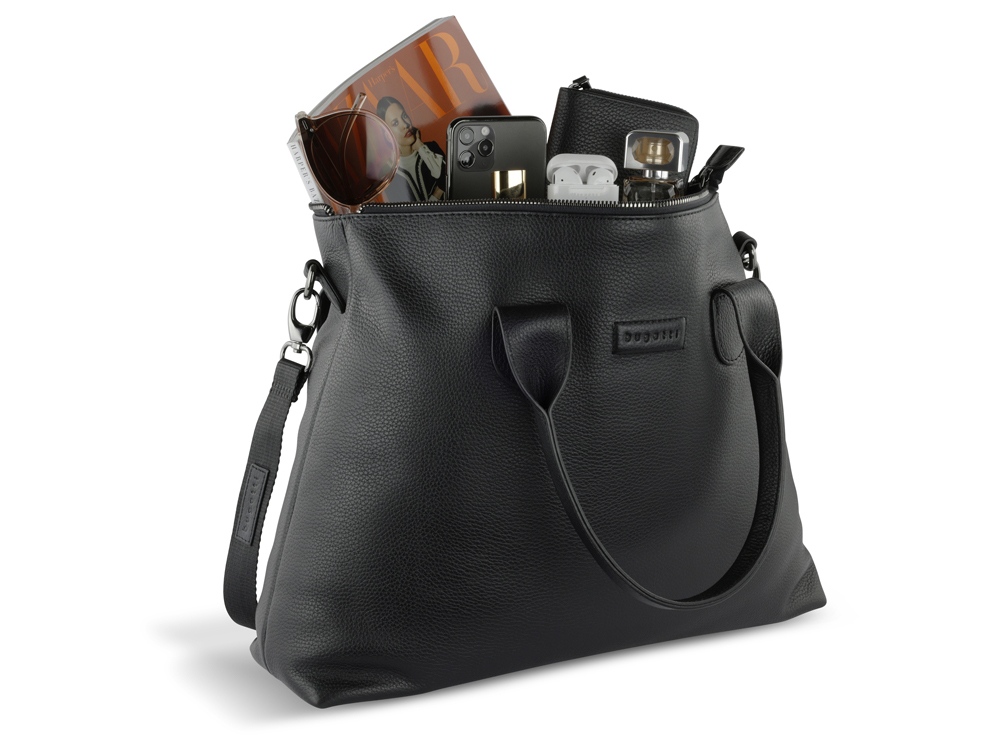 СУМКА-ШОППЕР ELSA Готовы к поездке в выходные? Мы раскрасим вашу ленту в соцсетях невероятной коллекцией ELSA. Коллекция ELSA предлагает широкий ассортимент аксессуаров и сумок разных форм и размеров, от элегантных кошельков и изящных наплечных сумочек для выхода в свет до вместительных шопперов и дорожных сумок для путешествий. Все модели серии изготовлены из высококачественной мягкой воловьей кожи и представлены в классическом черном, белом и бежевом цветах. Элегантное тиснение логотипа Bugatti придает очарование каждой модели. Коллекция выделяется продуманной функциональной организацией внутреннего пространства и защитой от радиочастотной идентификации RFID. Кошельки и ключницы оснащены специальным защитным слоем из фольги, который предотвращает незаконное сканирование вашей личной информации и препятствует списанию денежных средств с банковских карт. Какой бы аксессуар или сумку вы бы ни предпочли, будьте уверены, что с коллекцией ELSA вы точно окажетесь в центре внимания. СВОЙСТВА Функциональная организация: основное отделение на молнии с карманом на молнии, 2 открытых кармана, задний карман на молнии, 2 ручки, съемный регулируемый плечевой ремень (до 130 см). Материал: воловья кожа/полиэстер Размер: 46 х 11 х 31,5 см Вес: 0,755 кг