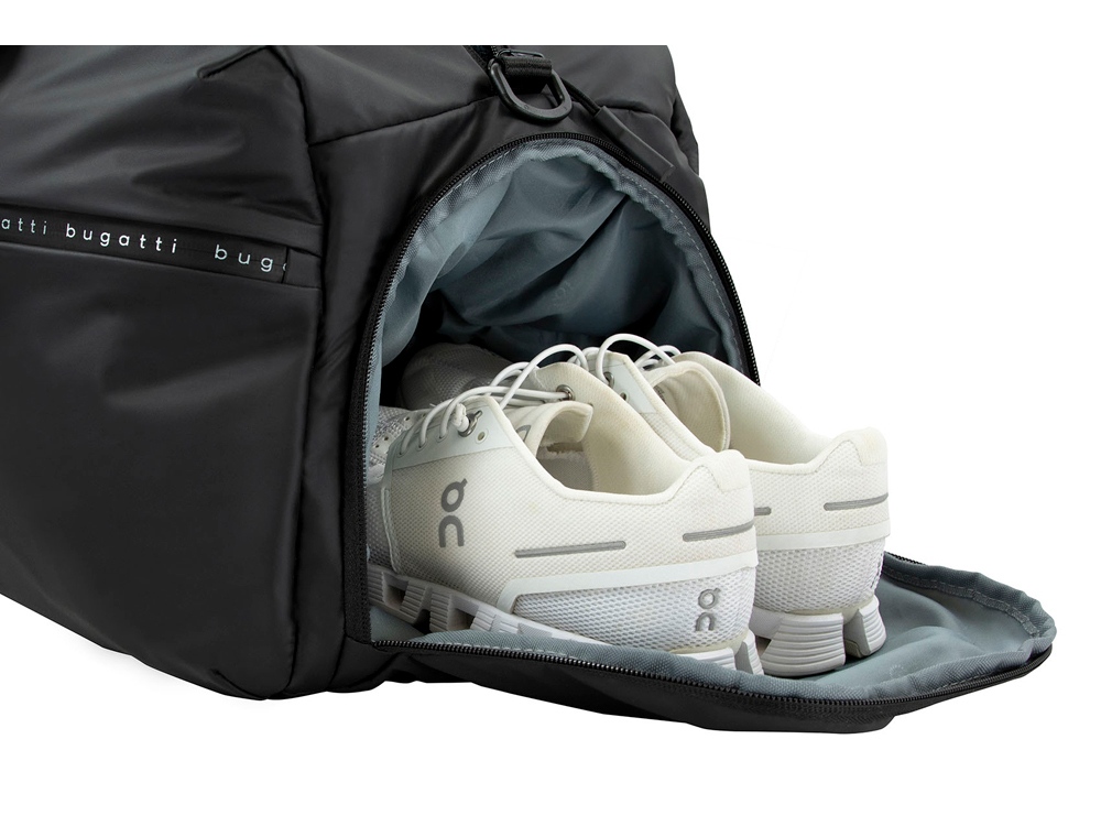 Сумка спортивная BUGATTI БЛАНК | BLANC, чёрная, тарпаулин/полиэстер, 52х26х27,5 см