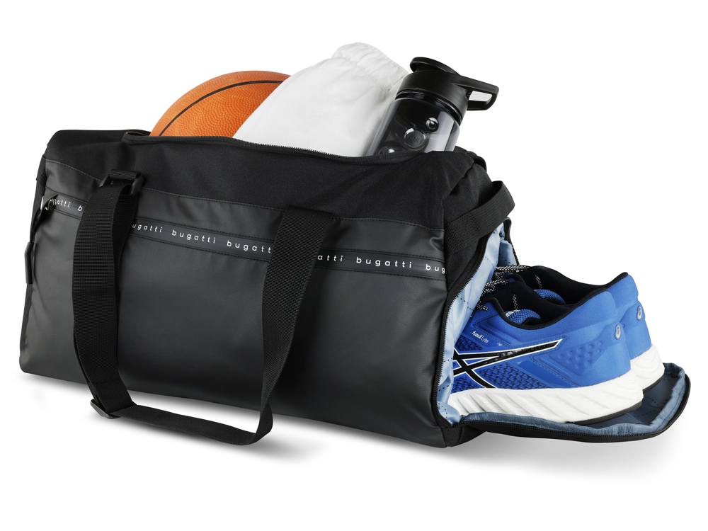 Сумка спортивная BUGATTI Blanc Delight, чёрная, нейлон RPET600D/тарпаулин/полиэстер, 47х23х28 см купить оптом и в розницу с нанесением логотипа в Нижнем Новгороде