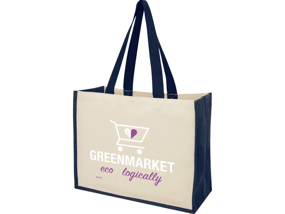 Сумка-тоут Varai для покупок из холщового хлопка и джута (плотность 320 г/м2), темно-синий