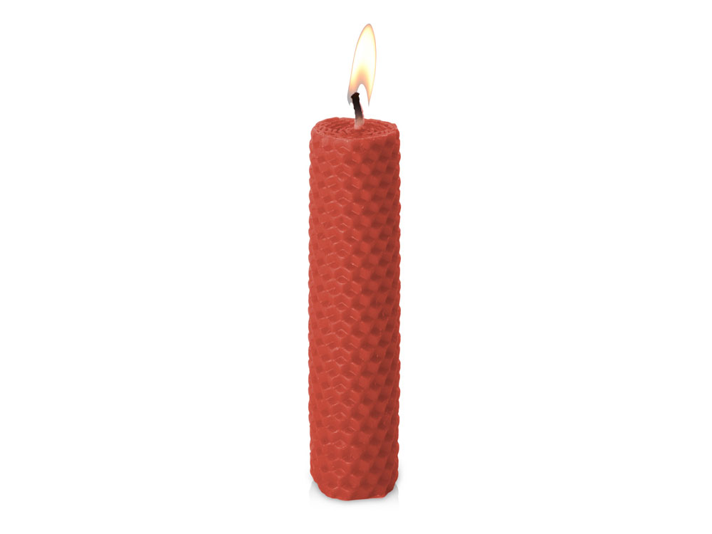 Свеча изготовлена вручную из крашеной вощины. Вощина - это рифленая пластина изготовленная из воскового сырья, которая имитирует донышки сотовых ячеек.