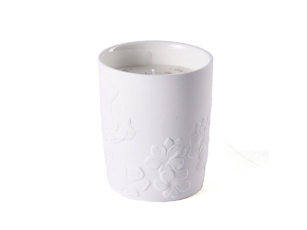 Ароматическая свеча с цветочным ароматом в фарфоровом кашпо от Valerie Concept. Кашпо выполнено из высокотемпературного прочного фарфора, украшено объёмным цветочным барельефом. Свеча из натурального соевого воска с хлопковым фитилем, подарит вам долгие часы наслаждения и умиротворения, благодаря нежному аромату с нотками чарующих цветов и хлопка. Свеча упакована в презентабельную подарочную коробку с логотипом, это универсальный, готовый подарок для ценителей уюта, комфорта, красоты и идеальный способ побаловать себя. Детали: Емкость может использоваться вторично после того, как свеча прогорит, как кашпо, конфетчицу, контейнер для хранения и т.д. Время горения: до 100 часов