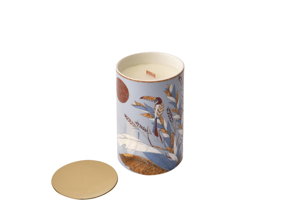 | Материал товара | Китайский фарфор, соевый воск, деревянный фитиль, крышка- нержавеющая сталь с позолоченным покрытием, выполненное методом гальванизации |