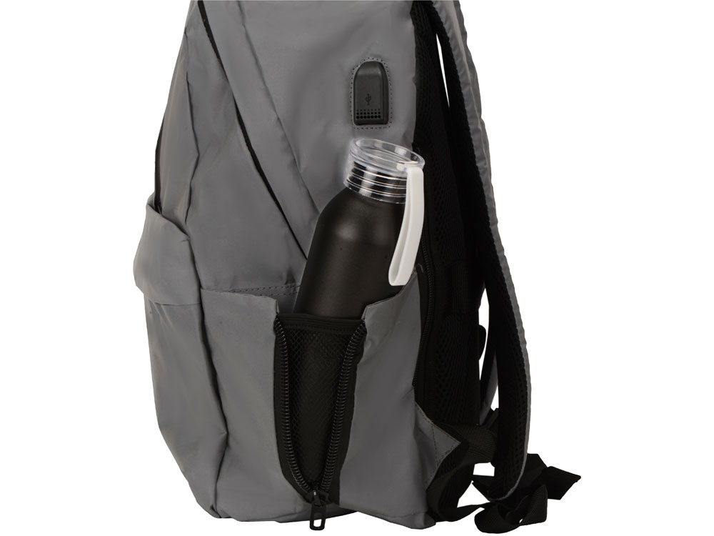 Легкий и вместительный рюкзак идеален для поездок и обеспечит дополнительную безопасность в темное время суток. Благодаря специальной конструкции в местах крепления молний и непромокаемости ткани риск намочить содержимое рюкзака сведен к минимуму. - карман для ноутбука внутри - потайной карман на спинке - боковые наружные карманы, один из которых эластичный на молнии для громоздких предметов - USB выход - дышащая спинка - ремень для крепления к чемодану - регулирующиеся по длине лямки