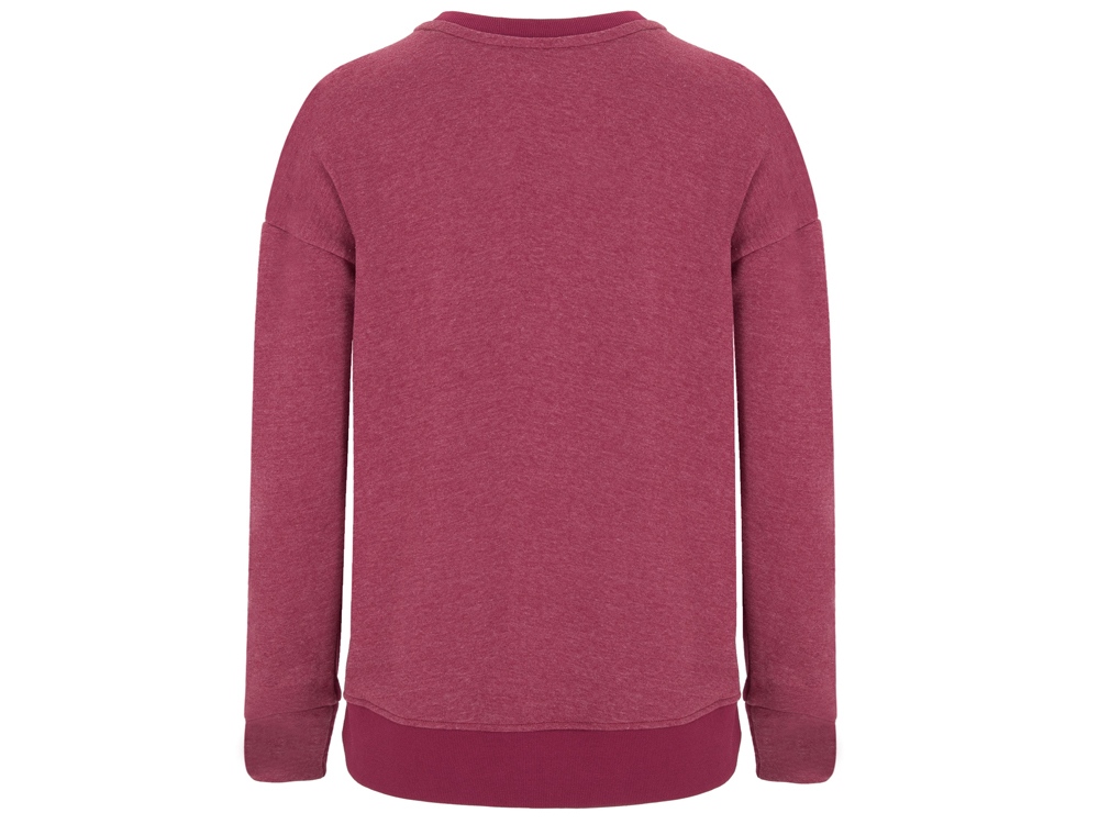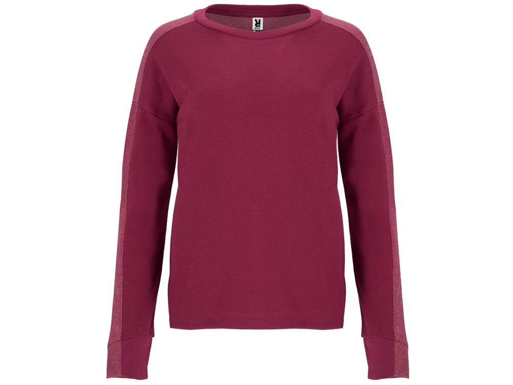 Блокинговый свитшот для женщин из двух цветов одного полотна. Горловина, манжеты и низ спинки из риба 2х1. Манжеты асимметричной формы. Разрезы в боковых швах, спинка немного длиннее переда.