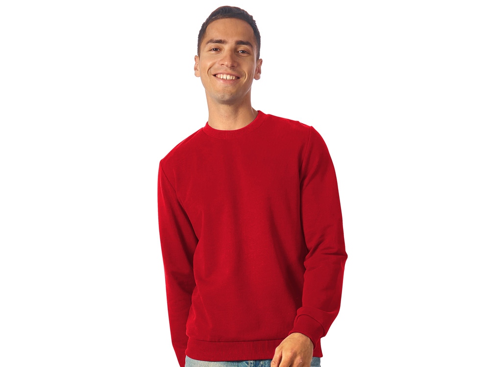 Свитшот из плотного 3х ниточного хлопкового футера. Горловина, манжеты и низ отделан рибом 2х2. Горловина спинки внутри дополнительно укреплена тесьмой с выработкой елочка. Полотно из утяжеленного хлопкового футера внутри с петельками без начеса. Модель прекрасно подходит для промо мероприятий и повседневной жизни.