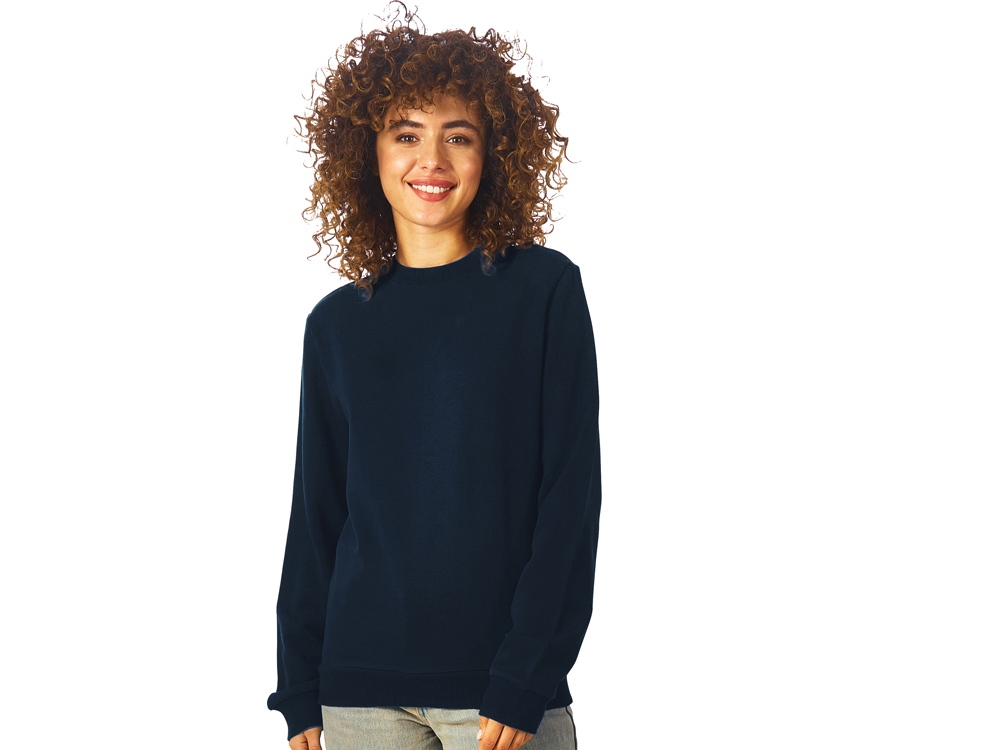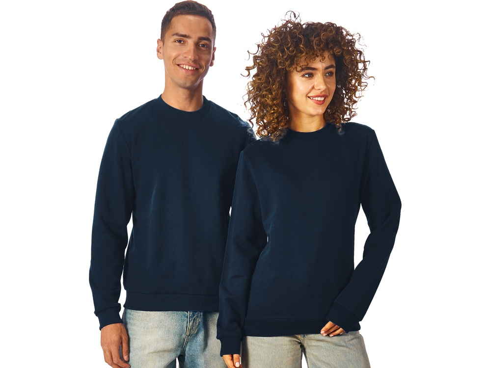 Свитшот из плотного 3х ниточного хлопкового футера. Горловина, манжеты и низ отделан рибом 2х2. Горловина спинки внутри дополнительно укреплена тесьмой с выработкой елочка. Полотно из утяжеленного хлопкового футера внутри с петельками без начеса. Модель прекрасно подходит для промо мероприятий и повседневной жизни.