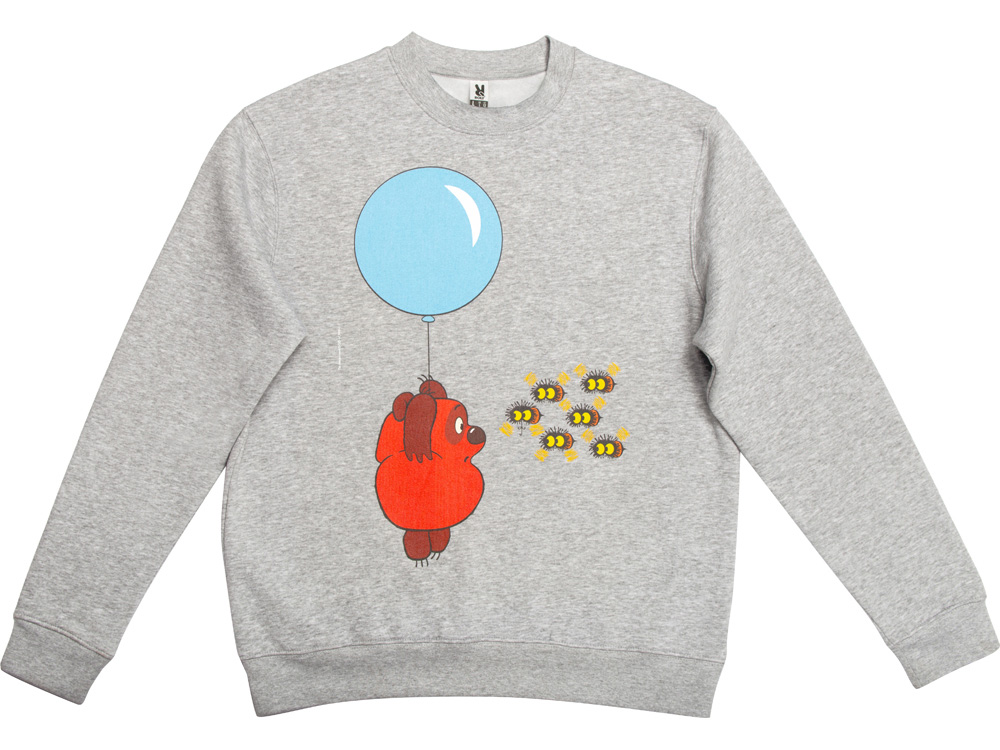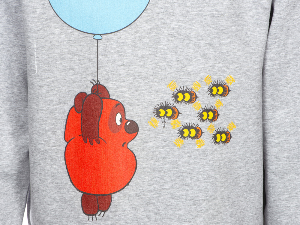 Свитшот с начесом Винни-Пух унисекс, серый меланж купить оптом и в розницу с нанесением логотипа в Нижнем Новгороде