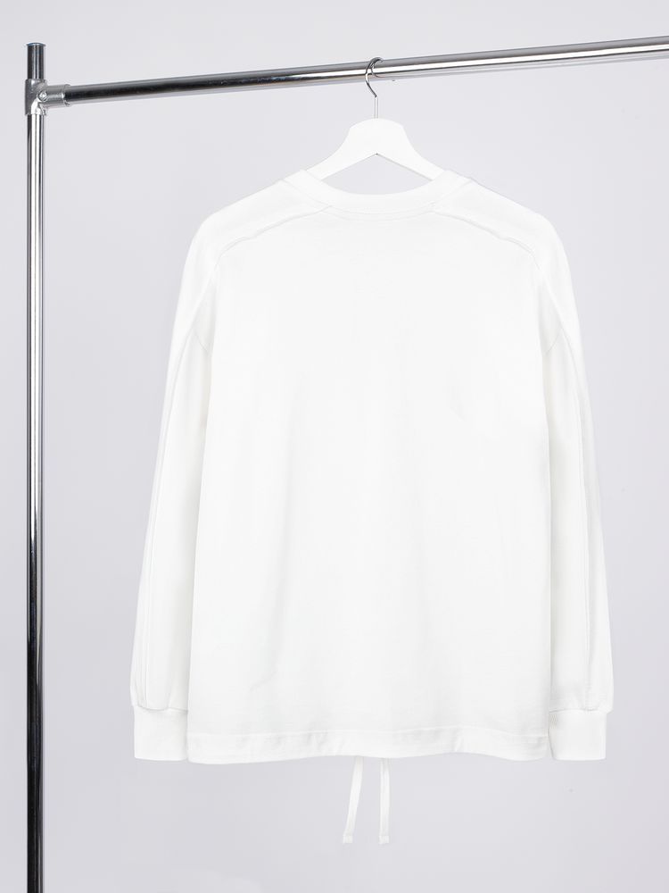 Свитшот унисекс оригинального пошива вдохнет новую жизнь в повседневный гардероб и добавит стильную нотку легкой небрежности в образ. Особая конструкция, где часть деталей — плечи и рукава вывернуты наизнанку, что создает необычный притягательный эффект.