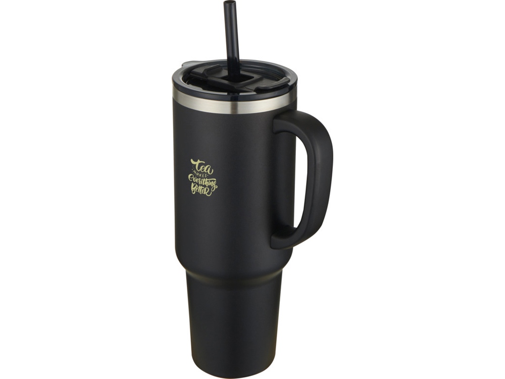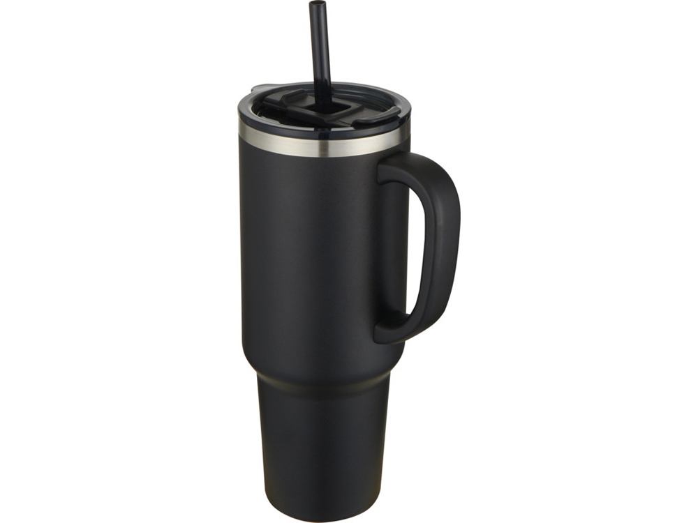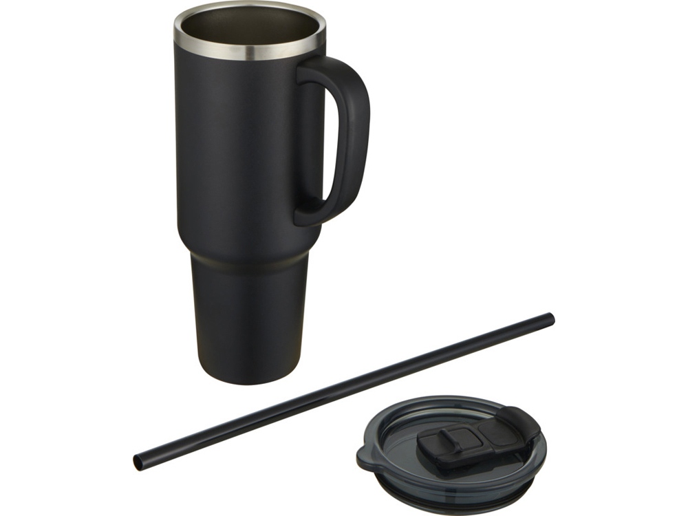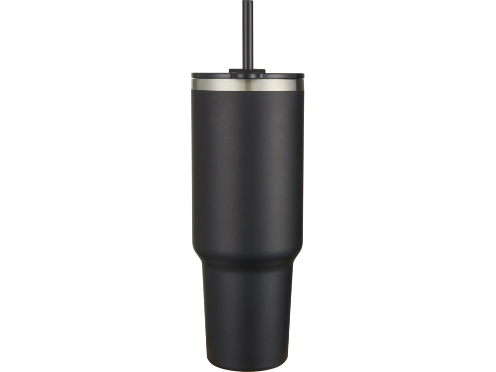 Sydney медная кружка с двойными стенками, сертифицированная согласно RCS, с вакуумной изоляцией и соломинкой, 1200 мл - сплошной черный купить оптом и в розницу с нанесением логотипа в Нижнем Новгороде