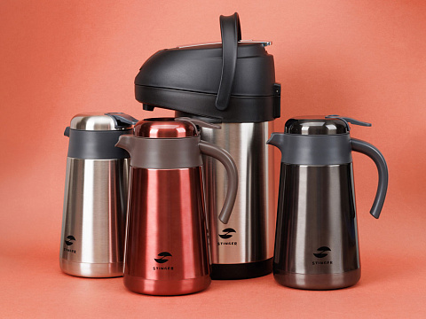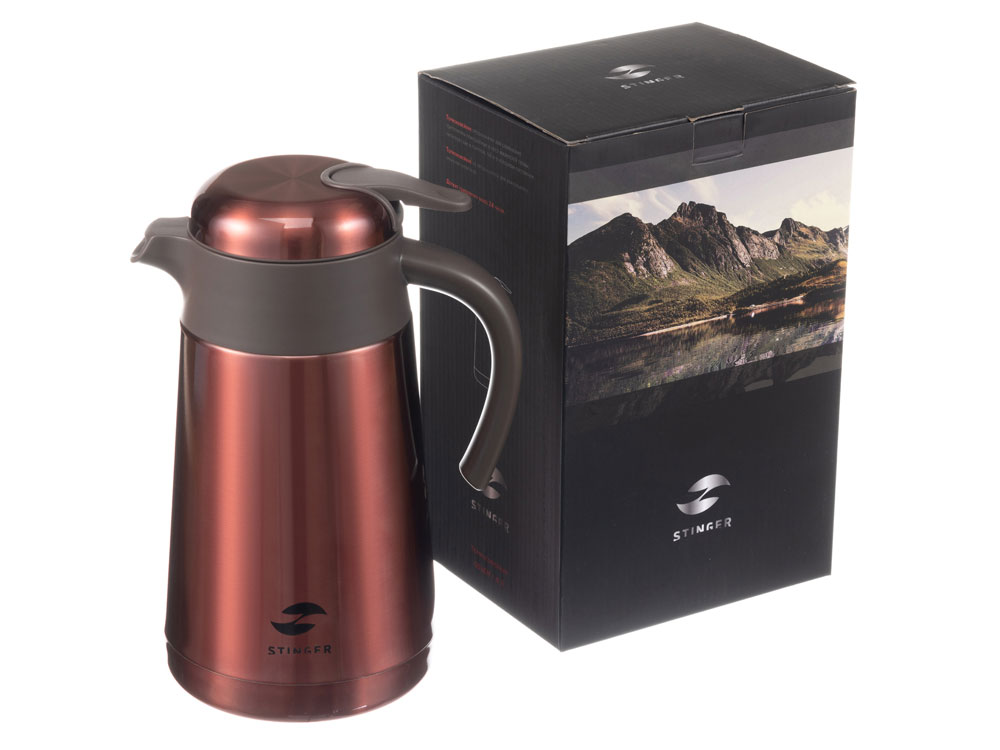 ТЕРМОКОФЕЙНИК STINGER 1,6 л НАЗНАЧЕНИЕ Термокофейник STINGER предназначен для сохранения температуры помещаемых в него жидкостей (воды, напитков) как в горячем, так и в холодном состоянии. ХАРАКТЕРИСТИКИ Объём: 1,6 л Вес: 0,928 кг Время сохранения тепла: 24 часа Время сохранения холода: 24 часа Метод изоляции: вакуум Размеры • Высота – 25,9 см • Диаметр горлышка – 9,5 см • Диаметр дна – 13,6 см • Ширина (с учетом ручки и носика) – 18 см Тип крышки: винтовая, узкий носик Тип горлышка: широкое Тип подачи наполнения: рычаг подачи / блокировки воды Цвет: красный Материалы • Корпус: нержавеющая сталь, класс AISI 304 18/8 Stainless Steel • Колба: нержавеющая сталь, класс AISI 304 18/8 Stainless Steel • Крышка: нержавеющая сталь, класс AISI 304 18/8 Stainless Steel, пищевой пластик, не содержит бисфенол А (BPA free) • Прокладки-уплотнители: пищевой силикон ОСОБЕННОСТИ • Двойные стенки с вакуумной изоляцией отлично сохраняют температуру долгое время, гарантируют безопасность прикосновения к очень горячим и холодным напиткам. • Внешний и внутренний корпус из прочной пищевой нержавеющей стали AISI 304 18/8. • Пластиковые детали не содержат Бисфенол А (BPA free). • Герметичная винтовая крышка защищает от случайного открывания и проливания жидкости. • Простота в использовании: эргономичная ручка и удобный рычаг позволяют наливать напиток в одно касание и одной рукой – достаточно нажать на кнопку. • Носик плавной формы с широким изливом позволит быстро наполнить чашки или бокалы. • Широкая горловина для легкого наполнения и очистки. • Силиконовая накладка на дне предотвращает случайное скольжение и опрокидывание. • Идеально подходит для горячего кофе или чая, сохраняет вкус и аромат любимых напитков.