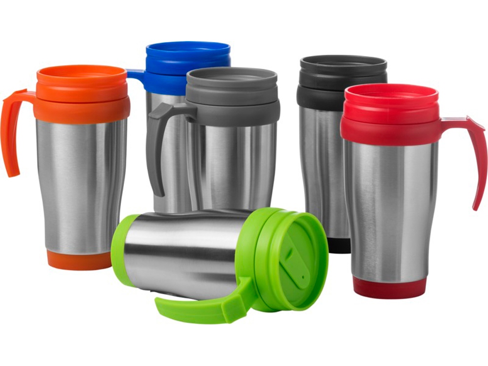 Термокружка Sanibel. Кружка с двойными стенками со съемной крышкой и открывающимся отверстием для питья. Объем – 330 мл. Наружная поверхность из нержавеющей стали, внутренняя поверхность из пластика. Без БФА.