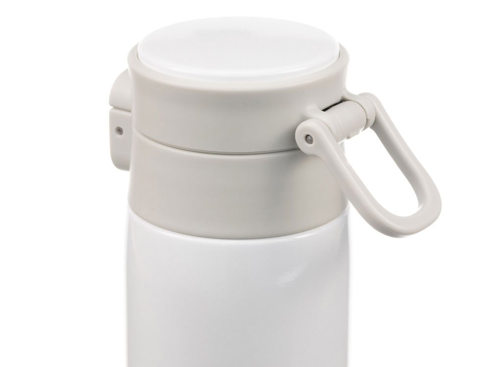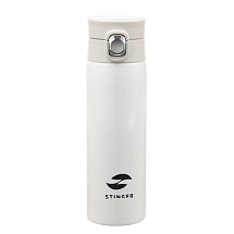 СВЕРХЛЕГКАЯ ТЕРМОКРУЖКА STINGER 0,42 л НАЗНАЧЕНИЕ Термокружка STINGER предназначена для употребления пищевых жидкостей (воды, напитков) как в горячем, так и в холодном состоянии. ХАРАКТЕРИСТИКИ Объём: 0,42 л Вес: 0,231 кг Время сохранения тепла: 6 часов Время сохранения холода: 6 часов Метод изоляции: вакуум Размеры • Высота – 21,9 см • Диаметр горлышка – 4,7 см • Диаметр дна – 6,5 см • Ширина (с учетом кольца и фиксатора) – 7,5 см Тип крышки: винтовая крышка-пробка с откидным механизмом Цвет: белый Материалы • Корпус: медицинская нержавеющая сталь, класс AISI 316 Stainless Steel • Колба: медицинская нержавеющая сталь, класс AISI 316 Stainless Steel • Крышка: пищевой пластик, не содержит бисфенол А (BPA free) • Прокладки-уплотнители: пищевой силикон ОСОБЕННОСТИ • Двойные стенки с вакуумной изоляцией отлично сохраняют температуру долгое время, гарантируют безопасность прикосновения к очень горячим и холодным напиткам. • Внешний и внутренний корпус из прочной медицинской нержавеющей стали AISI 316. • Пластиковые детали не содержат Бисфенол А (BPA FREE). • Герметичная крышка и дополнительный фиксатор защищают от случайного открывания и проливания жидкости. • Конструкция крышки позволяет открывать термокружку в одно касание и одной рукой – достаточно нажать на кнопку, верхняя крышка откинется на 180 градусов и автоматически зафиксируется в открытом положении. • Силиконовая накладка на дне предотвращает случайное скольжение и опрокидывание. • Ситечко для заварки чая или кофе. • Кольцо для удобства переноски. • Подходит под все виды подстаканников.