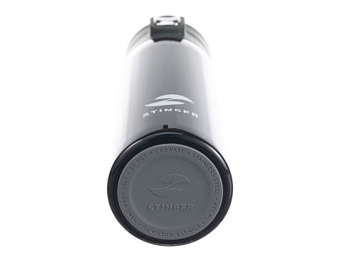 СВЕРХЛЕГКАЯ ТЕРМОКРУЖКА STINGER 0,42 л НАЗНАЧЕНИЕ Термокружка STINGER предназначена для употребления пищевых жидкостей (воды, напитков) как в горячем, так и в холодном состоянии. ХАРАКТЕРИСТИКИ Объём: 0,42 л Вес: 0,231 кг Время сохранения тепла: 6 часов Время сохранения холода: 6 часов Метод изоляции: вакуум Размеры • Высота – 21,9 см • Диаметр горлышка – 4,7 см • Диаметр дна – 6,5 см • Ширина (с учетом кольца и фиксатора) – 7,5 см Тип крышки: винтовая крышка-пробка с откидным механизмом Цвет: черный Материалы • Корпус: медицинская нержавеющая сталь, класс AISI 316 Stainless Steel • Колба: медицинская нержавеющая сталь, класс AISI 316 Stainless Steel • Крышка: пищевой пластик, не содержит бисфенол А (BPA free) • Прокладки-уплотнители: пищевой силикон ОСОБЕННОСТИ • Двойные стенки с вакуумной изоляцией отлично сохраняют температуру долгое время, гарантируют безопасность прикосновения к очень горячим и холодным напиткам. • Внешний и внутренний корпус из прочной медицинской нержавеющей стали AISI 316. • Пластиковые детали не содержат Бисфенол А (BPA FREE). • Герметичная крышка и дополнительный фиксатор защищают от случайного открывания и проливания жидкости. • Конструкция крышки позволяет открывать термокружку в одно касание и одной рукой – достаточно нажать на кнопку, верхняя крышка откинется на 180 градусов и автоматически зафиксируется в открытом положении. • Силиконовая накладка на дне предотвращает случайное скольжение и опрокидывание. • Ситечко для заварки чая или кофе. • Кольцо для удобства переноски. • Подходит под все виды подстаканников.