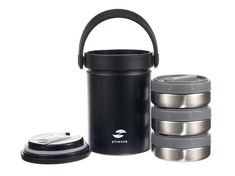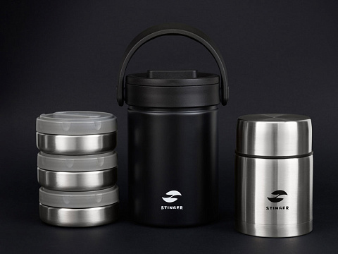 ТЕРМОС ЛАНЧ-БОКС STINGER 1,7 л НАЗНАЧЕНИЕ Термос ланч-бокс STINGER предназначен для сохранения температуры помещаемых в него готовых блюд как в горячем, так и в холодном состоянии. ХАРАКТЕРИСТИКИ Объём: 1,7 л Вес: 1,196 кг Время сохранения тепла: 6 часов Время сохранения холода: 6 часов Метод изоляции: вакуум Размеры • Высота – 21,5 см • Диаметр горлышка – 13 см • Диаметр дна – 13 см • Ширина (с учетом ручки) – 16,1 см Тип крышки: винтовая крышка-пробка Тип горлышка: широкое Цвет: серебристый Материалы • Корпус: нержавеющая сталь, класс AISI 304 18/8 Stainless Steel • Колба: нержавеющая сталь, класс AISI 304 18/8Stainless Steel • Крышка: пищевой пластик, не содержит бисфенол А (BPA free) • Прокладки-уплотнители: пищевой силикон • Контейнеры: нержавеющая сталь, класс AISI 304 18/8 Stainless Steel, пищевой пластик, не содержит бисфенол А (BPA free) • Складная ложка: нержавеющая сталь, класс AISI 304 18/8 Stainless Steel ОСОБЕННОСТИ • Двойные стенки с вакуумной изоляцией отлично сохраняют температуру долгое время, гарантируют безопасность прикосновения к очень горячим и холодным напиткам. • Внешний и внутренний корпус из прочной пищевой нержавеющей стали AISI 304 18/8. • Пластиковые детали не содержат Бисфенол А (BPA FREE). • Многослойные контейнеры (3 шт) из нержавеющей стали объемом 400 мл. • Складная ложка фиксируется в специальной нише крышки. • Герметичная винтовая пробка защищает от случайного открывания и проливания жидких блюд. • Широкая горловина для легкого наполнения и очистки. • Силиконовая накладка на дне предотвращает случайное скольжение и опрокидывание. • Эргономичная ручка для удобной переноски. • Идеально сохраняет вкус и аромат любимых блюд.