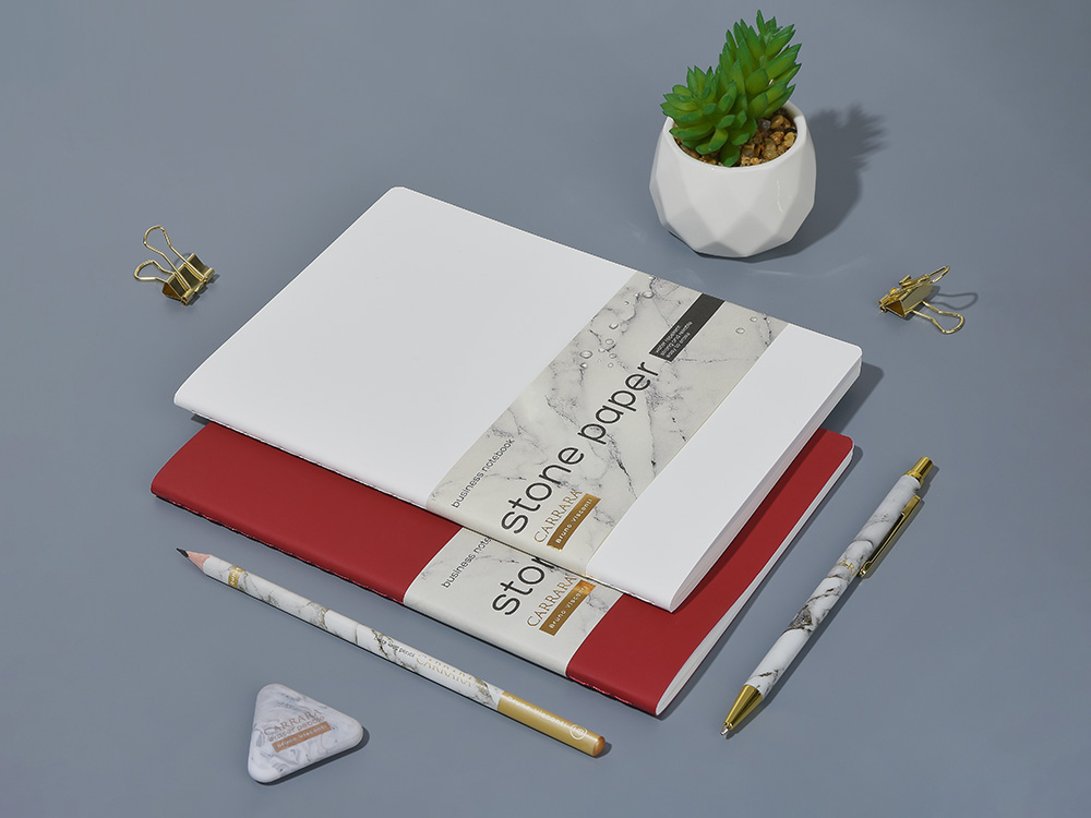 Тетрадь с каменной бумагой А5 Carrara 40 л., линейка, бордовый купить оптом и в розницу с нанесением логотипа в Нижнем Новгороде