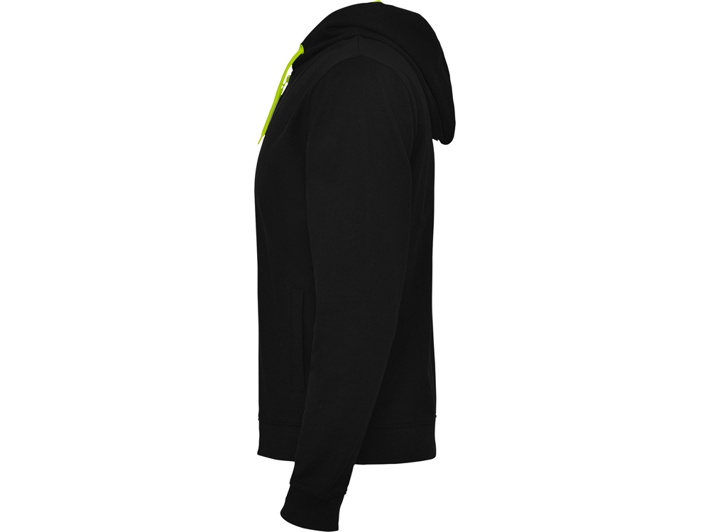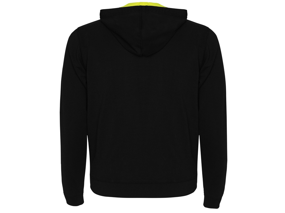 Толстовка на молнии из френч терри без начеса с деталями неонового цвета. Центральная молния с контрастным пуллером. Подкладка капюшона из микроперфорированного полиэстера контрастного неонового цвета. Шнур капюшона и айлетсы контрастного неонового цвета. Риб 1х1 на манжетах и внизу изделия. Два боковых кармана с широкой листочкой. Укрепляющая строчка внутри горловины.