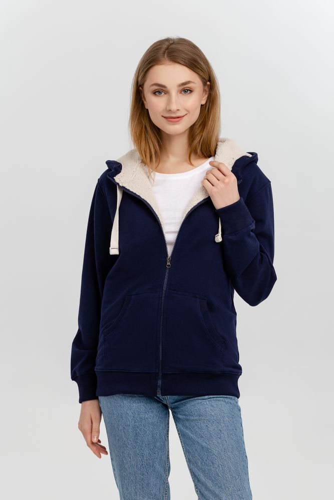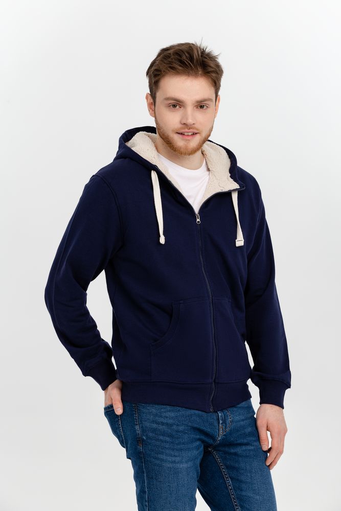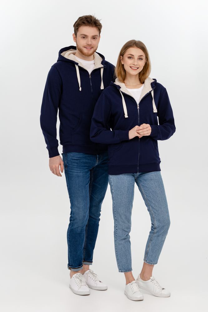 Толстовка унисекс на молнии с капюшоном. Края рукава и низ изделия выполнены резинкой. Подкладка из синтетической шерпы.