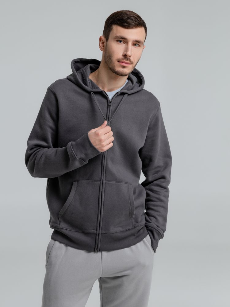 Толстовка на молнии с капюшоном унисекс King, темно-серая купить оптом и в розницу с нанесением логотипа в Нижнем Новгороде