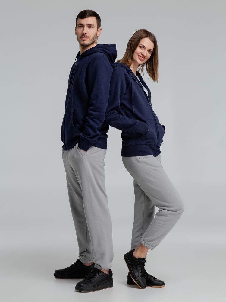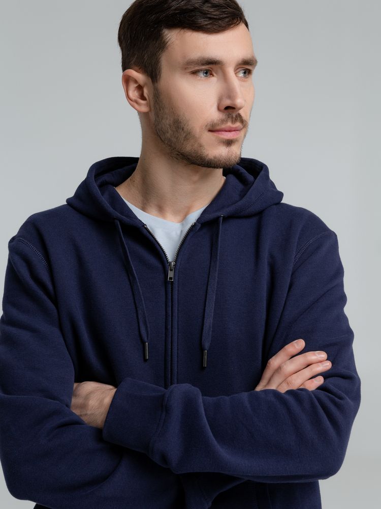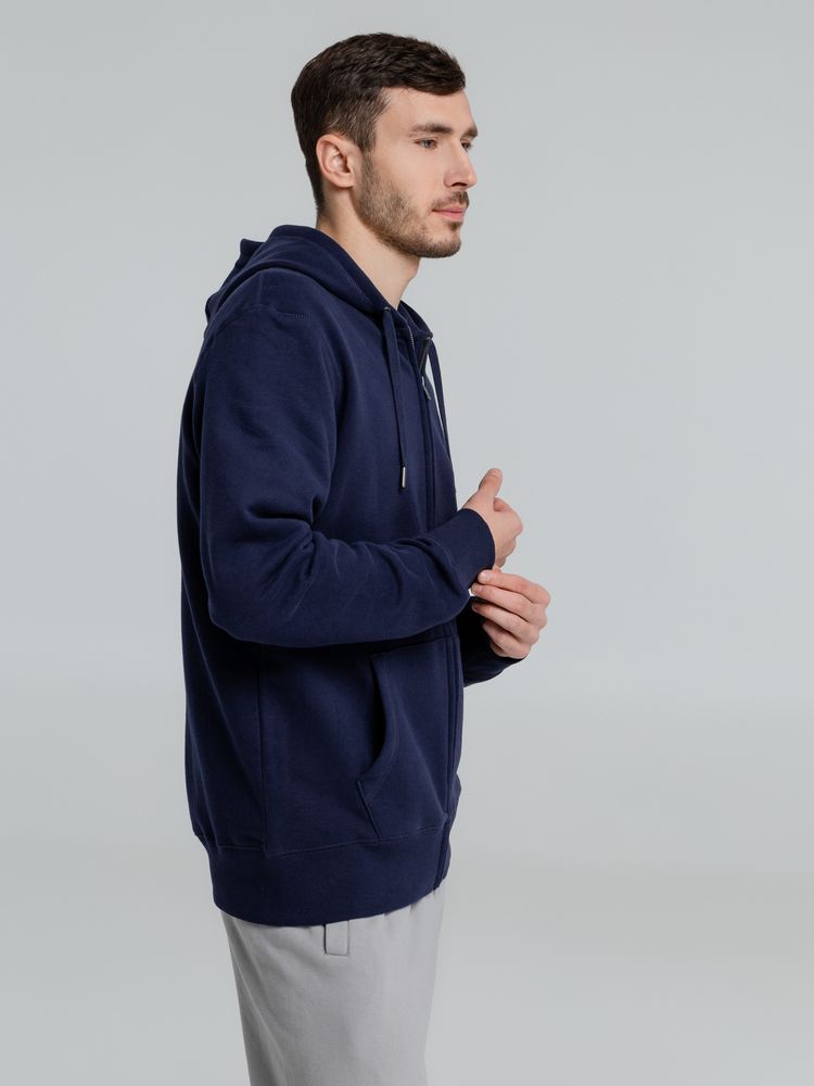Толстовка на молнии с капюшоном унисекс King, темно-синяя купить оптом и в розницу с нанесением логотипа в Нижнем Новгороде