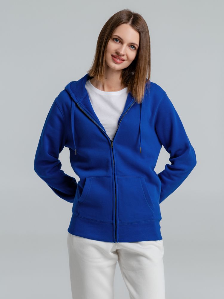 Толстовка на молнии с капюшоном унисекс King, ярко-синяя купить оптом и в розницу с нанесением логотипа в Нижнем Новгороде