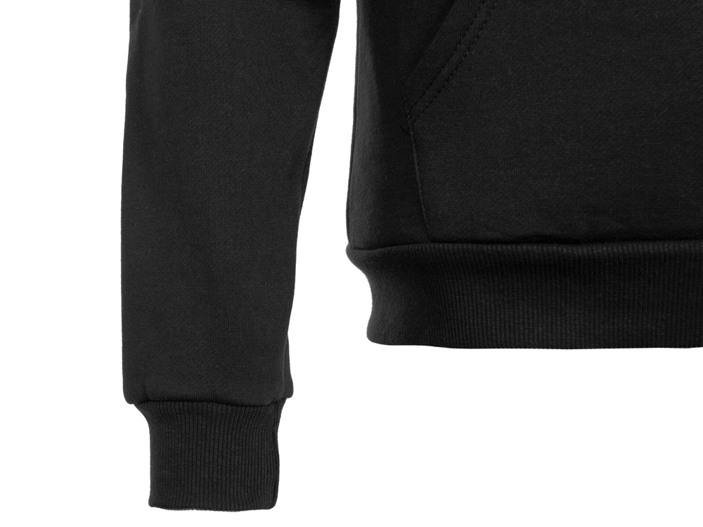 Толстовка с капюшоном (худи) из плотного футера с мягким начесом, с небольшим добавлением полиэстера. Удобная и практичная модель, подходит для прогулок по городу, активного отдыха, путешествий. • Прямой силуэт. • Капюшон с подкладкой в цвет основного материала, металлическими люверсами и плоским шнурком с наконечниками. • Удобный карман-кенгуру. • Долго сохраняет форму и не мнется благодаря небольшому содержанию полиэстера. • Гигроскопичное волокно, обладает хорошими гигиеническими свойствами. • Низ толстовки, рукавов и горловины обработаны рибом (резинкой) 1x1.