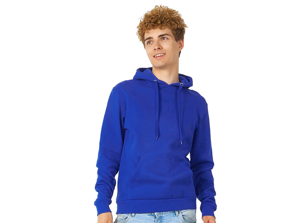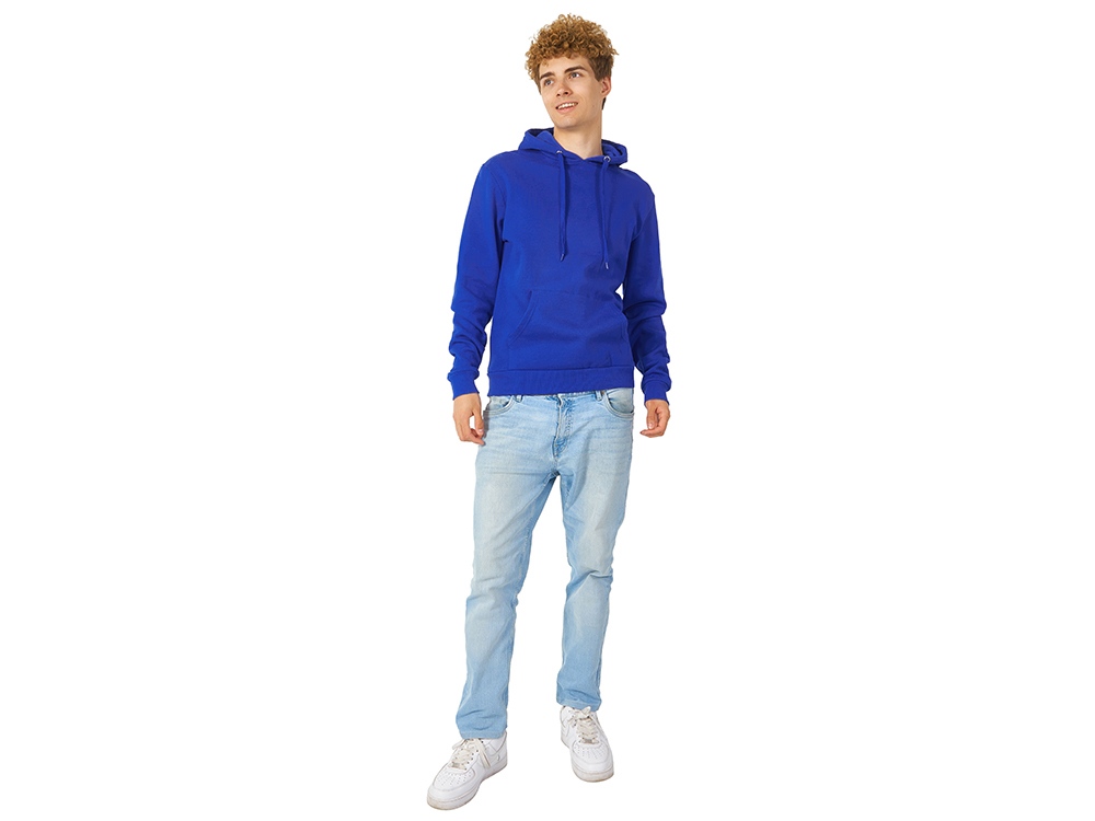 Толстовка с капюшоном (худи) из плотного футера с мягким начесом, с небольшим добавлением полиэстера. Удобная и практичная модель, подходит для прогулок по городу, активного отдыха, путешествий. • Прямой силуэт. • Капюшон с подкладкой в цвет основного материала, металлическими люверсами и плоским шнурком с наконечниками. • Удобный карман-кенгуру. • Долго сохраняет форму и не мнется благодаря небольшому содержанию полиэстера. • Гигроскопичное волокно, обладает хорошими гигиеническими свойствами. • Низ толстовки, рукавов и горловины обработаны рибом (резинкой) 1x1.