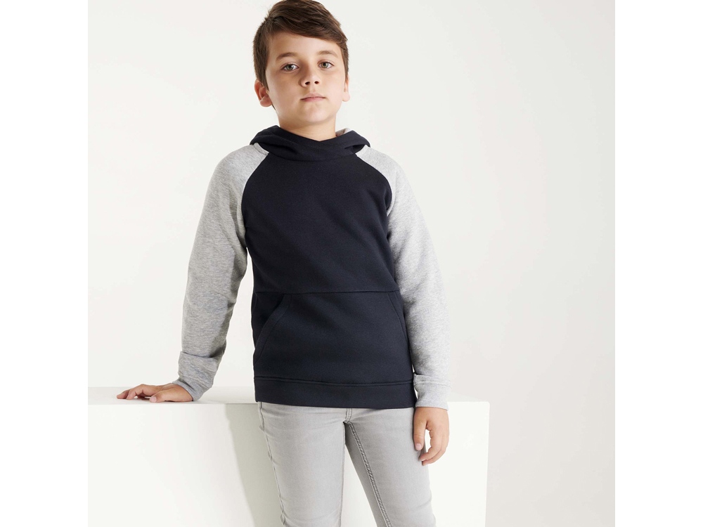 Худи с контрастным рукавом реглан. Капюшон с запахом, с контрастной подкладкой. На полочке карман кенгуру. Манжеты рукавов и низ изделия из риба 1х1. В ассортименте представлена аналогичная мужская модель Badet