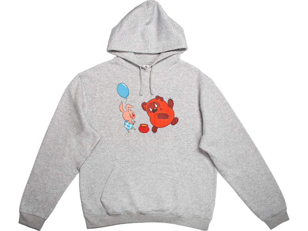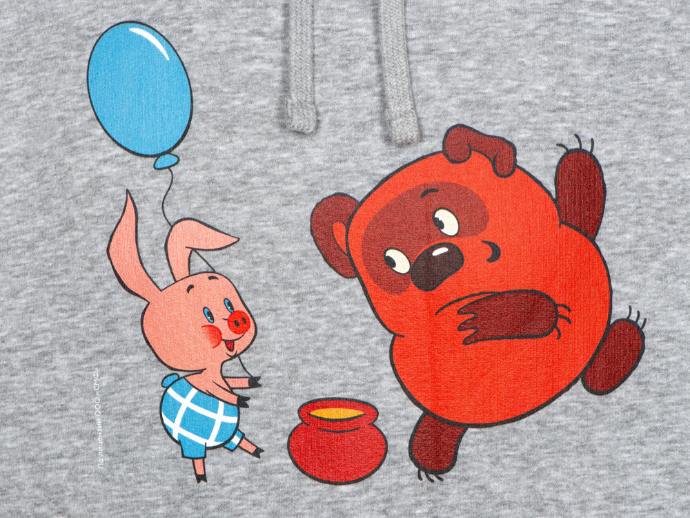 Толстовка с капюшоном Винни-Пух мужская, серый меланж купить оптом и в розницу с нанесением логотипа в Нижнем Новгороде