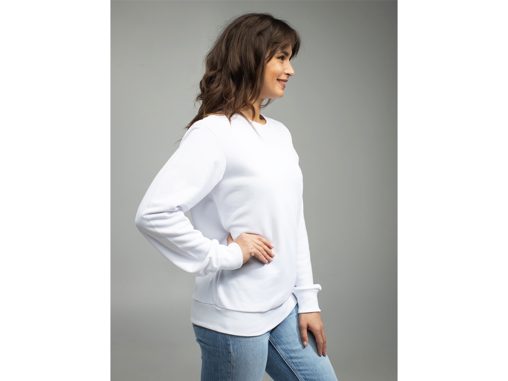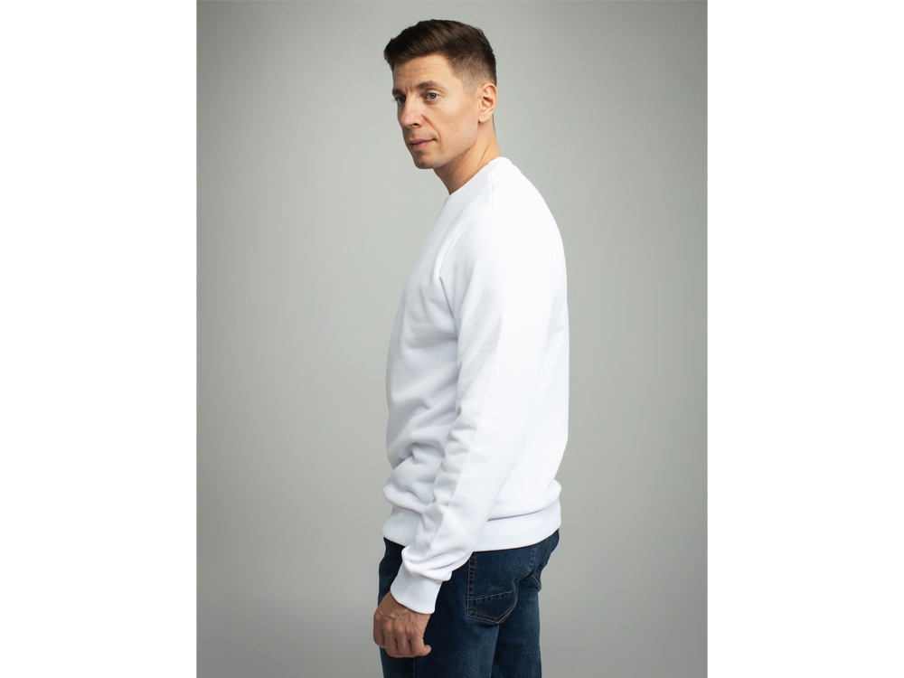 Свитшот прямого кроя с круглой горловиной и втачным рукавом. Особенности плетения полотна позволяют добиться эффекта 100% хлопка с внутренней стороны, обеспечивая гипоаллергенность и комфорт при носке, и 100% полиэстера с внешней стороны изделия, обеспечивая яркость красок нанесения и их износостойкость. Горловина, манжеты и низ зделия выполнены из полотна Кашкорсе (95% хлопок и 5% спандекс).