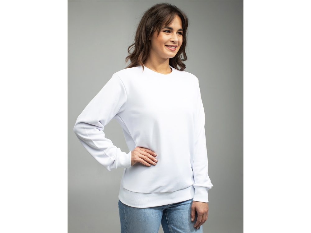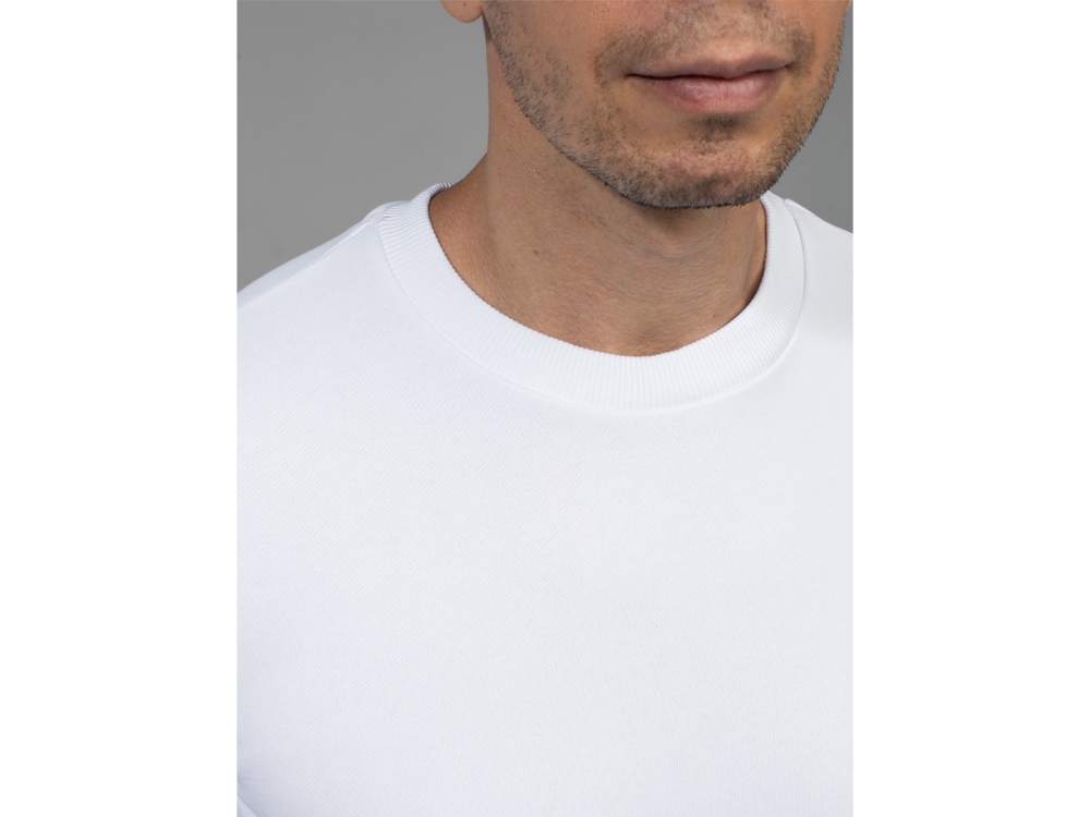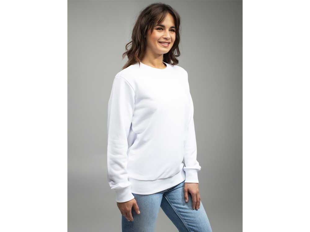 Свитшот прямого кроя с круглой горловиной и втачным рукавом. Особенности плетения полотна позволяют добиться эффекта 100% хлопка с внутренней стороны, обеспечивая гипоаллергенность и комфорт при носке, и 100% полиэстера с внешней стороны изделия, обеспечивая яркость красок нанесения и их износостойкость. Горловина, манжеты и низ зделия выполнены из полотна Кашкорсе (95% хлопок и 5% спандекс).