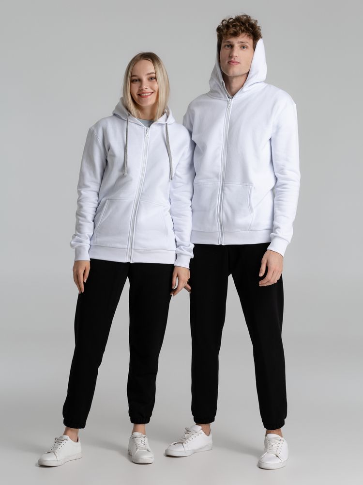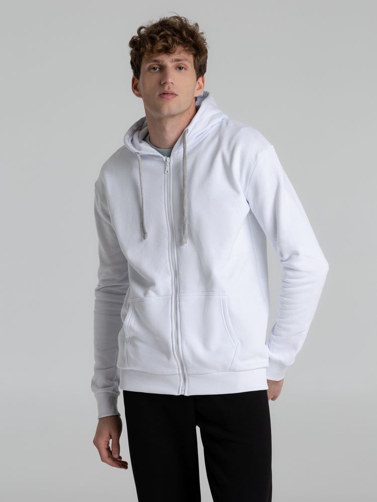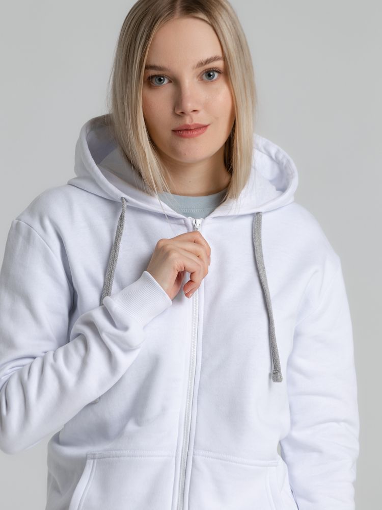 Толстовка на молнии с капюшоном Unit Siverga Heavy, белая купить оптом и в розницу с нанесением логотипа в Нижнем Новгороде