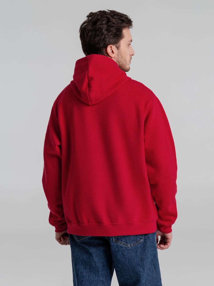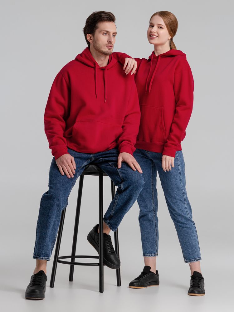Классическая модель унисекс с карманом-«кенгуру». Внутренняя сторона из мольтона с начесом. Капюшон с металлическими люверсами и плетеной тесьмой тон в тон, укрепляющая тесьма по вороту сзади. Манжеты и низ изделия в резинку с эластаном.