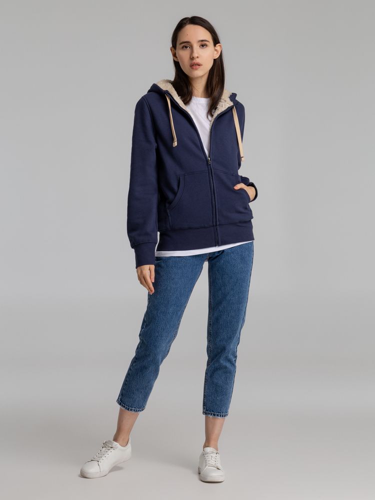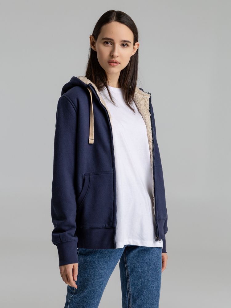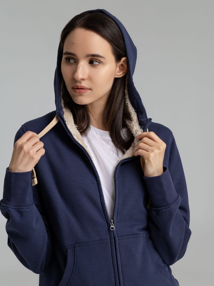 Толстовка унисекс на молнии Sherpa 280, темно-синяя купить оптом и в розницу с нанесением логотипа в Нижнем Новгороде