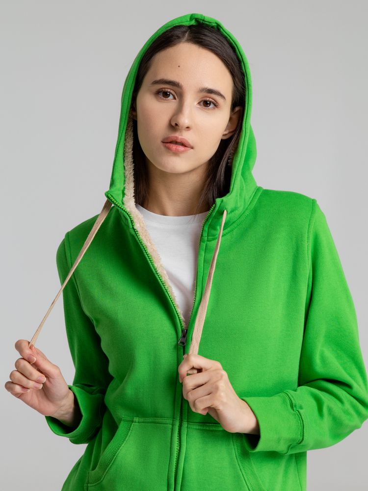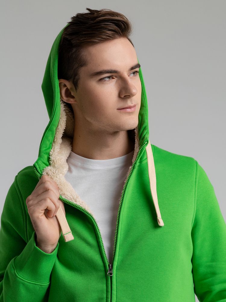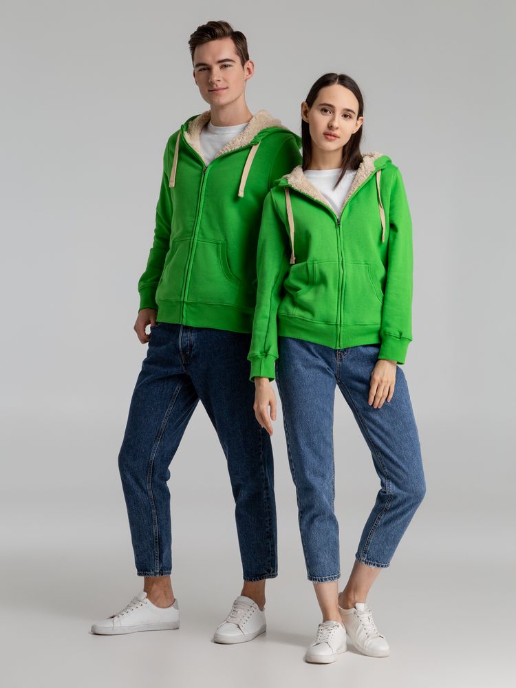 Толстовка унисекс на молнии Sherpa 280, ярко-зеленая купить оптом и в розницу с нанесением логотипа в Нижнем Новгороде
