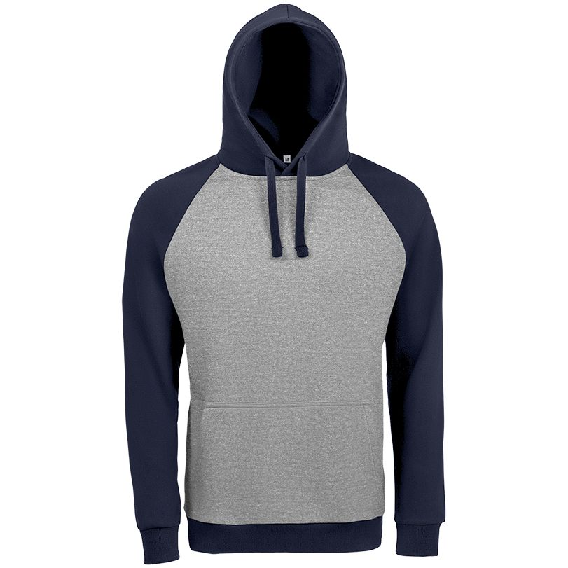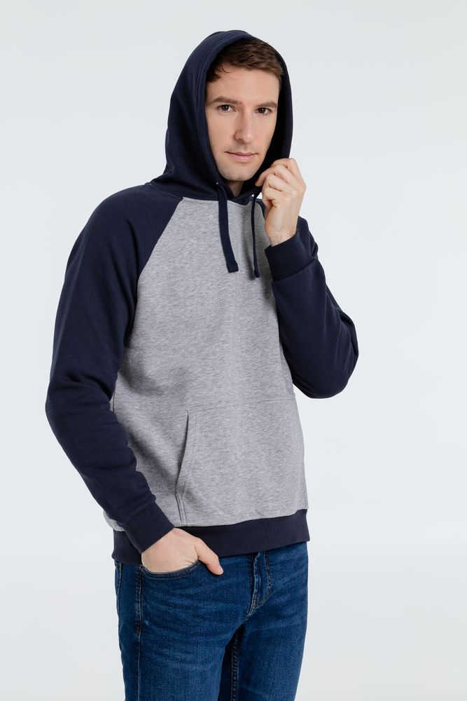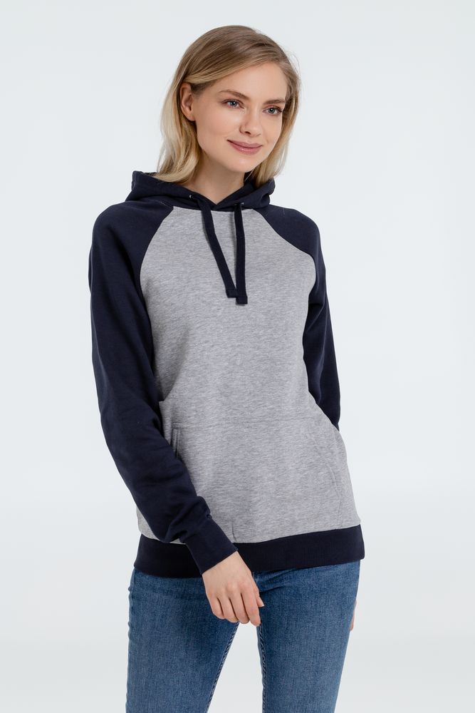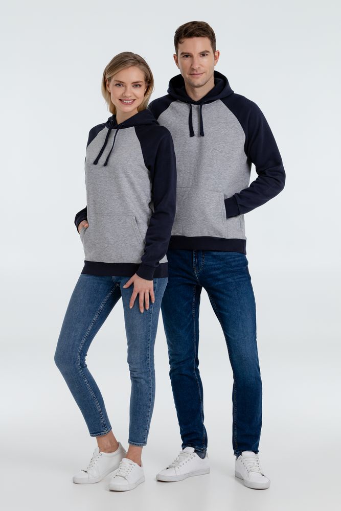Двухцветная утепленная толстовка унисекс с рукавами реглан и карманом «кенгуру».