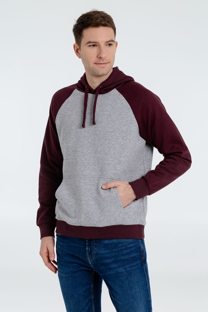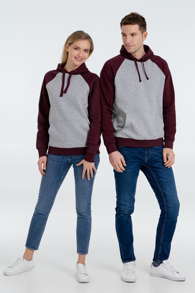 Толстовка унисекс Seattle, серый меланж с бордовым купить оптом и в розницу с нанесением логотипа в Нижнем Новгороде