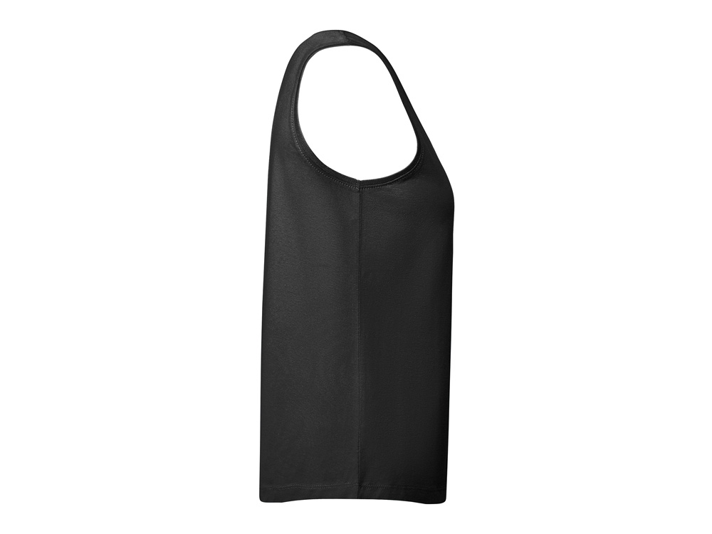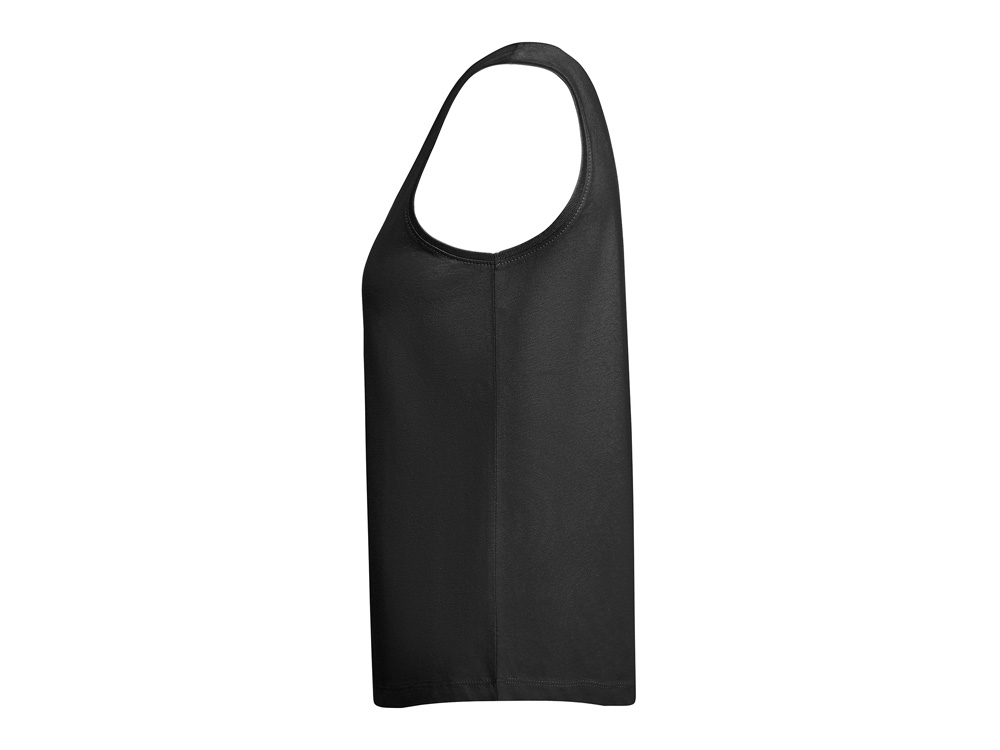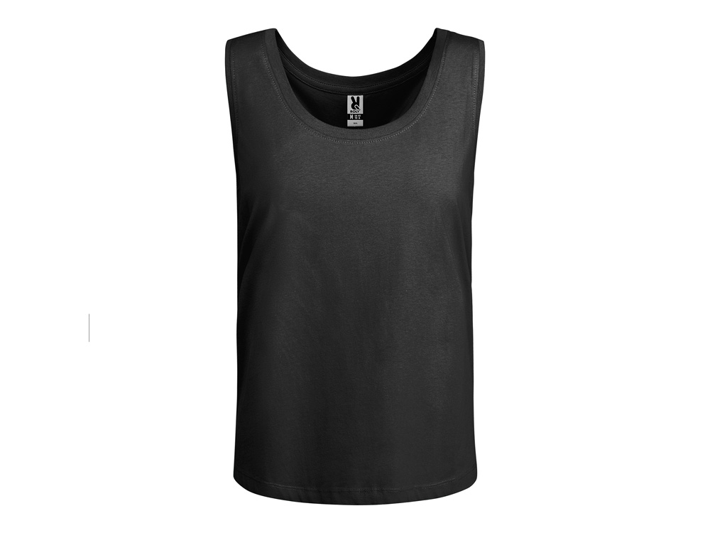 Свободная женская футболка с широкими бретелями. Вырез и проймы обработаны бейкой из риба 1x1. Подол округлой формы. Боковые швы.