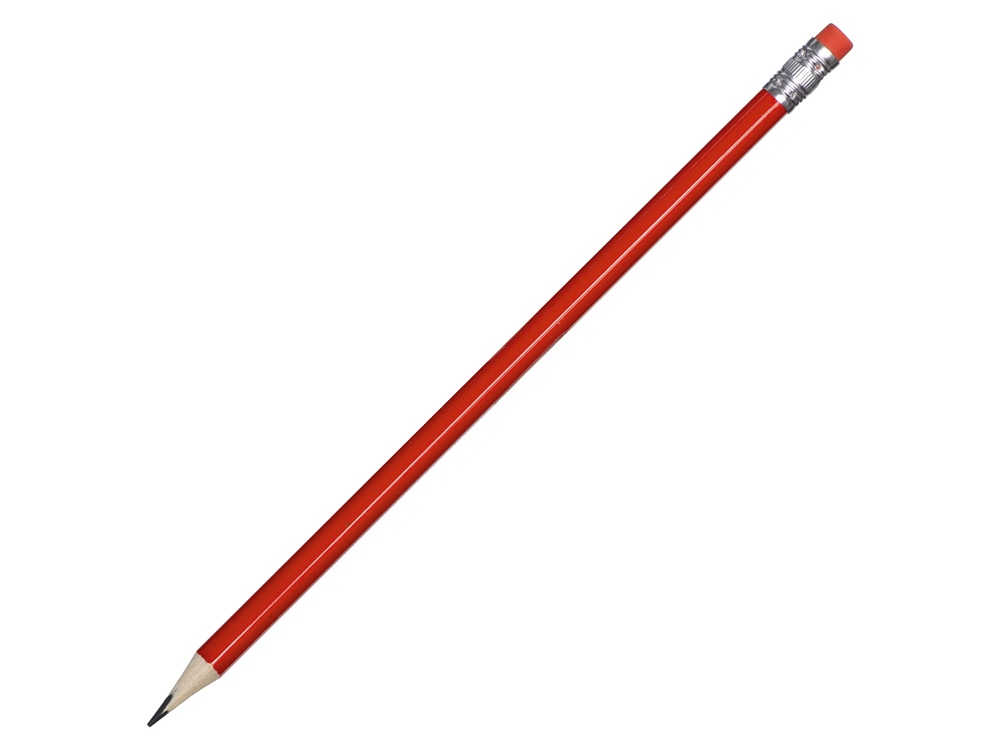 Трехгранный чернографитовый карандаш с ластиком будет очень полезным и недорогим подарком. Карандаш заточен.