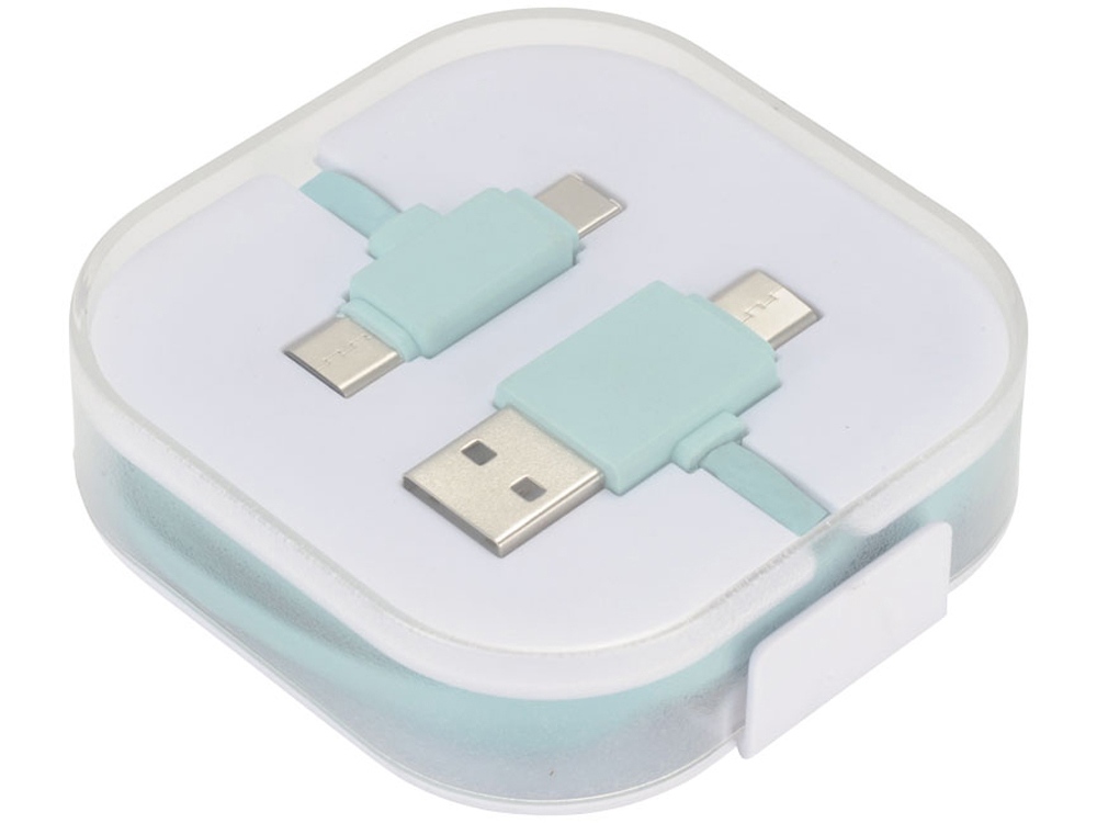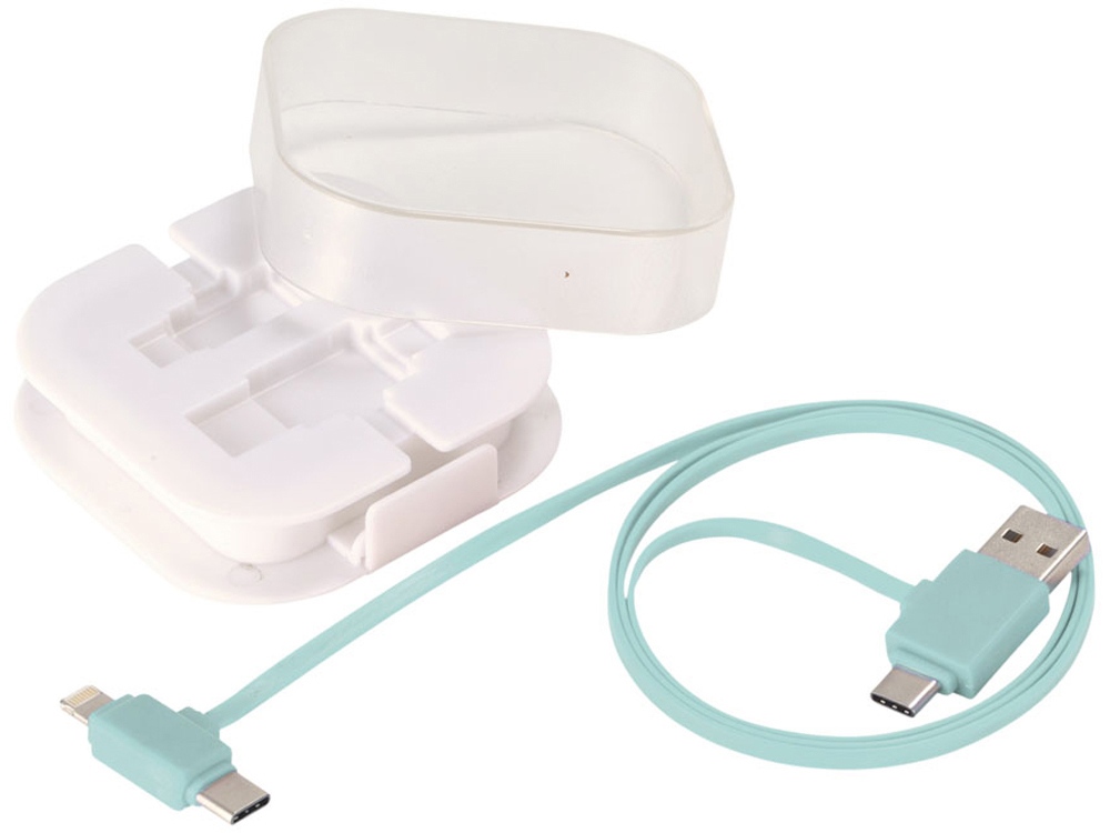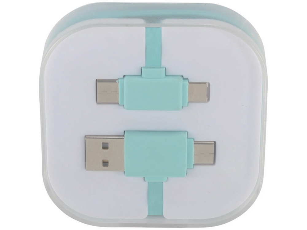 Кабель для зарядки 4-в-1 двух типов C: 1 USB типа A и 2-в-1 двухконтактных наконечников для устройств Apple iOS и Android. Используются как зарядка, так и передача данных. Чтобы зарядить устройства Apple, поместите кабель стороной, у которой нет контактов в устройстве, чтобы зарядить устройства Android, поместите кабель со стороны, в которой есть контакты в устройстве.