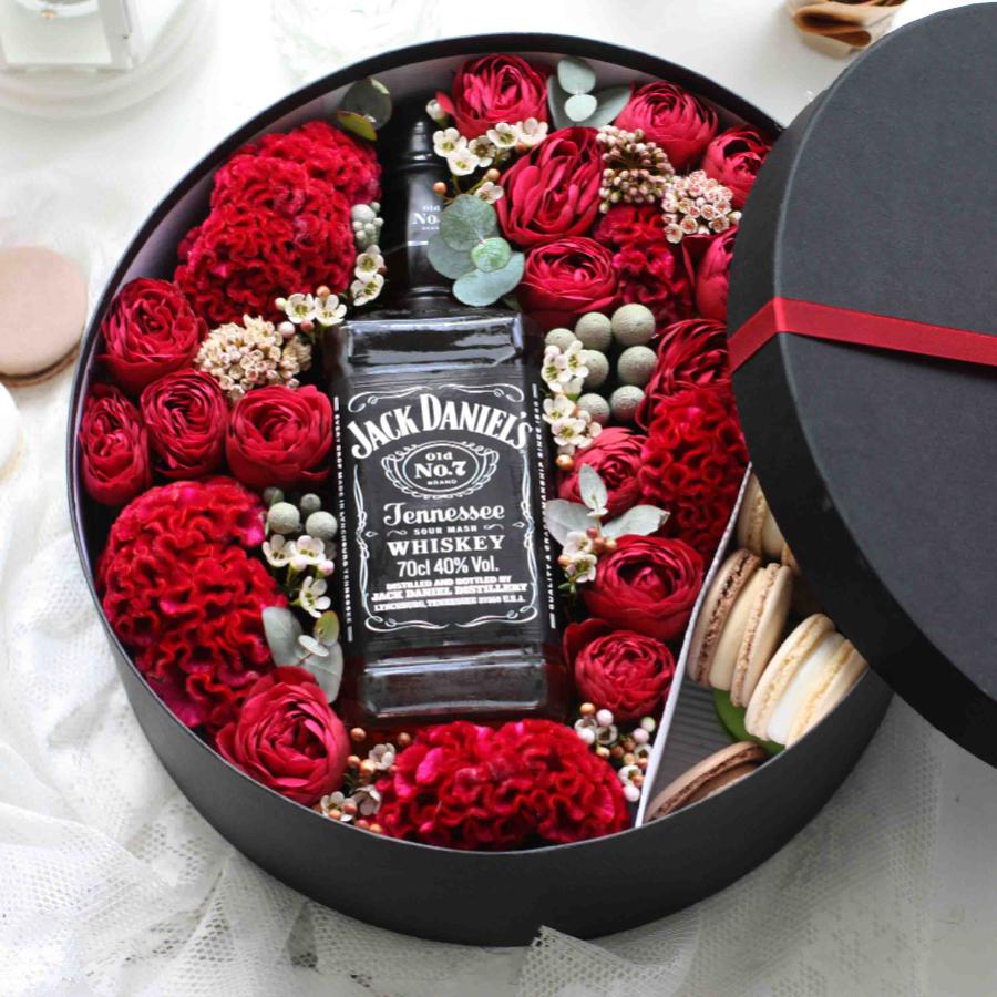 Купить Цветы в коробке XL с макарунами в интернет-магазине в Нижнем Новгороде