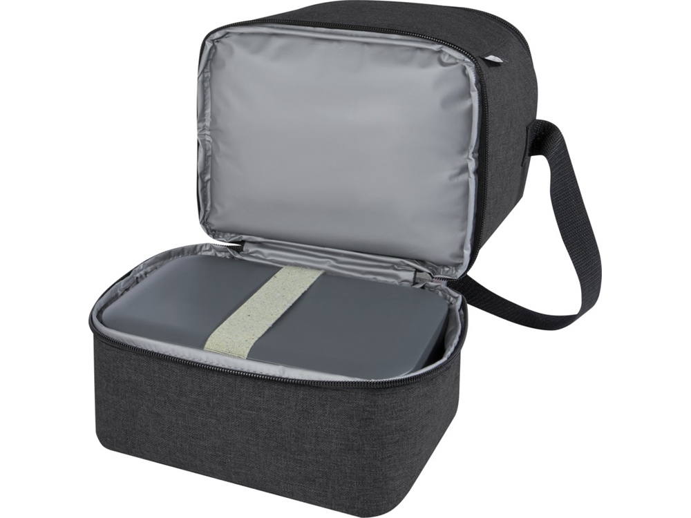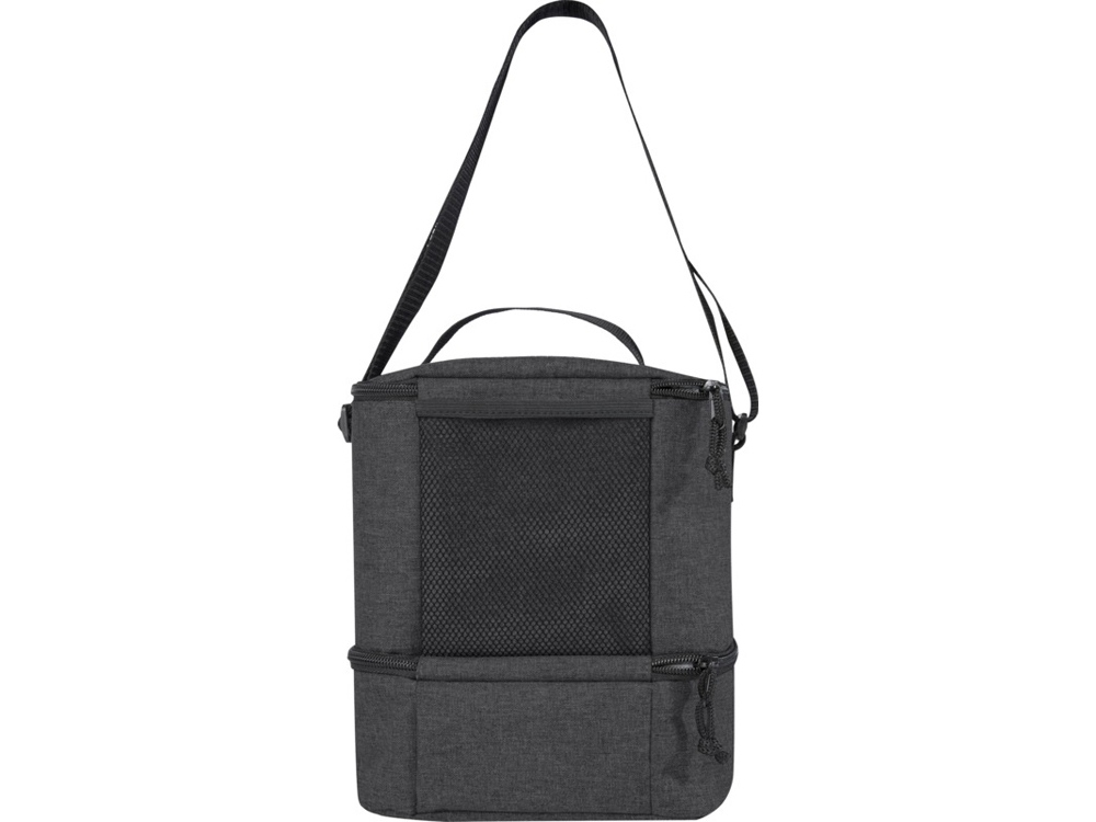 Сумка-холодильник Tundra выполнена из переработанного материала, в ней достаточно места для всех ваших продуктов, которые вы берете на обед. Имеет одно верхнее изолированное отделение на молнии и одно нижнее изолированное отделение на молнии. Нижнее отделение идеально подходит для бенто-бокса, а в переднем прорезном кармане удобно носить защитную маску и другие небольшие предметы. Подкладка и внешний слой сумки-холодильника PEVA изготовлены из переработанного РЕТ-пластика. 600DПереработанный Полиэстер.
