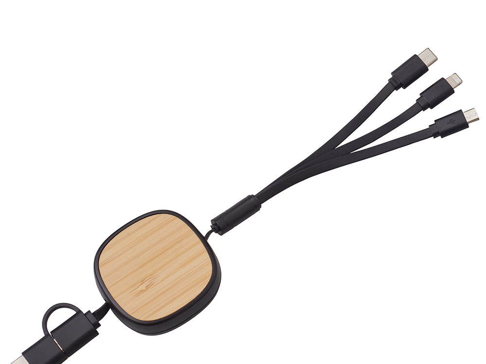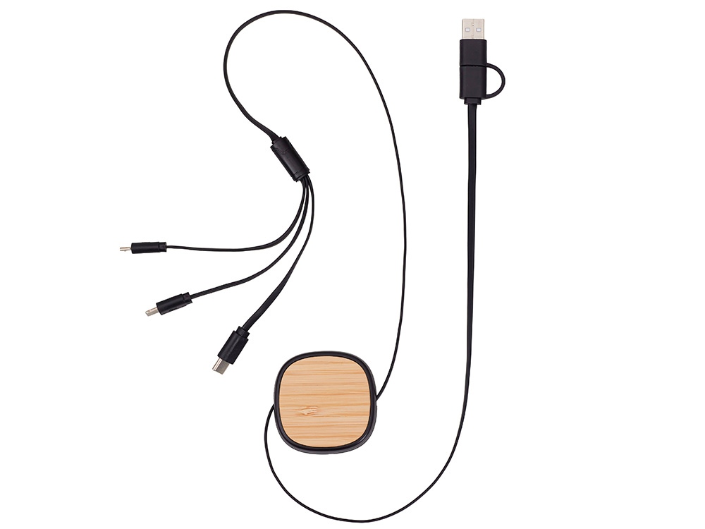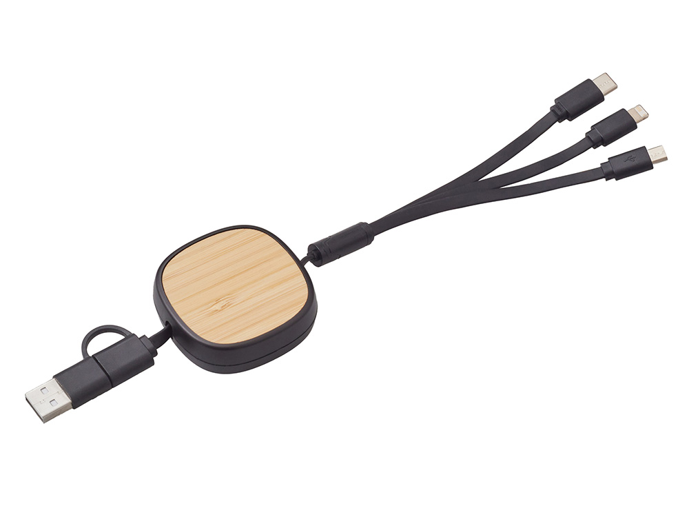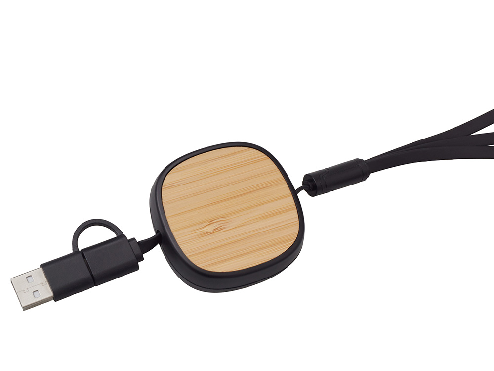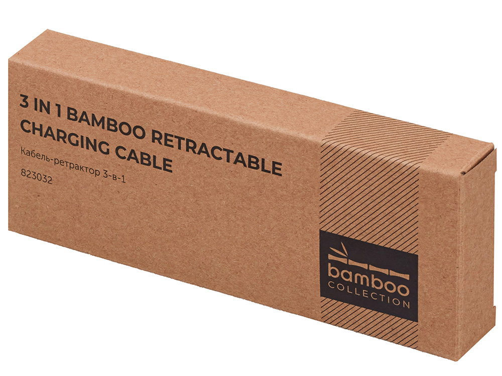 Универсальный кабель с ретрактором 3-в-1 Retrax — это стильное и практичное решение для зарядки и передачи данных на ходу. Компактный корпус из экологичного бамбукового покрытия сочетается с удобной системой автоматического складывания, что делает его идеальным спутником в путешествиях, на работе и в повседневной жизни. Кабель оснащён тремя разъёмами: USB-A, Micro-USB и Lightning, обеспечивая совместимость с широким спектром устройств — от смартфонов до планшетов и других гаджетов. Благодаря прочной конструкции и элегантному дизайну, Retrax станет незаменимым аксессуаром для тех, кто ценит функциональность и стиль. Поставляется в фирменной коробке bamboo collection. • 3 в 1: один кабель — три разъёма (USB-A, Micro-USB, Lightning) для универсальной зарядки. • Входной разъем 2 в 1 – USB-C и USB-A • Автоматический ретрактор: кабель легко вытягивается и возвращается в корпус — всегда под рукой, но не мешает. • Компактный и стильный: эргономичный корпус с натуральным бамбуковым покрытием — сочетание технологий и природы. • Удобно для путешествий: миниатюрный размер позволяет легко помещать кабель в карман, сумку или рюкзак.