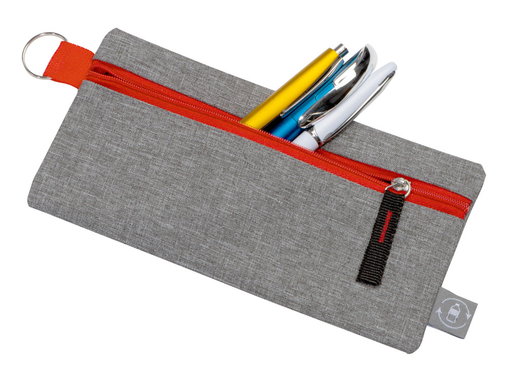 Универсальный пенал из переработанного полиэстера RPET Holder, серый/красный купить оптом и в розницу с нанесением логотипа в Нижнем Новгороде