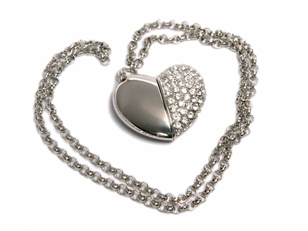 Флеш-накопитель в виде Сердца с кристаллами , объем памяти 64 ГБ. Металлический корпус. Скорость чтения 15 Мб/с. Скорость записи 5 Мб/с.