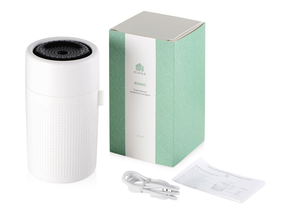 Увлажнитель Bioko от KIANA прекрасно впишется в интерьер как квартиры, так и офиса благодаря своему размеру: компактность позволяет использовать его как дома, так и в офисе. Благодаря наличию встроенного аккумулятора эта модель может обходиться без проводов и размещаться в любой точке квартиры. Минималистичный и простой дизайн увлажнителя помогает не только сочетать его с любым интерьером, но и делает Bioko идеальным фоном для нанесения лого. Подсветка работает в двух режимах: цвет подсветки может меняться в диапазоне 7 оттенков, а может светить ровно одним фиксированным цветом. Bioko моментально увлажняет воздух, доступны два режима распыления: постоянный и переменный. - портативный - два режима распыления: постоянный, переменный - два режима подсветки: 7 меняющихся цвета подсветки, зафиксированный цвет режим автоматического отключения - светодиодный индикатор зарядки поможет понять, когда пора подзарядить увлажнитель