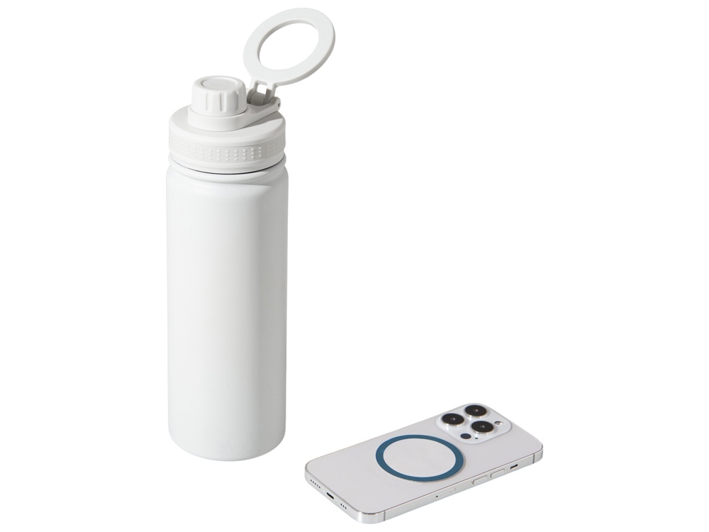 Современные технологии и стильный дизайн объединились в одной бутылке! Спортивная бутылка с магнитным держателем MagSafe поможет вам всегда держать водный баланс в норме и сделает жизнь удобнее. Благодаря магнитному держателю бутылка надежно удерживает iPhone 12 версии и новее. Магнитное крепление подходит также и для любого смартфона, т.к. в комплекте есть металлическое кольцо с клейким слоем. Кольцо наклеивается на заднюю крышку или чехол смартфона, и вы можете крепить смартфон к бутылке за секунду. Объем 600мл. Для кого эта бутылка? • Для спортсменов: Магнитное крепление позволяет следить за тренировками, слушать музыку или смотреть видео, не отвлекаясь на удерживание телефона в руках. • Для путешественников и автовладельцев • Для офисных и удаленных работников • Для всех, кто заботится об экологии Ключевые особенности: • Магнитная ручка - держатель MagSafe для iPhone и других смартфонов (если наклеить кольцо-стикер из комплекта) • Нетеряемая герметичная крышка • Сохраняет тепло до 11 часов, холод до 22 часов • Двойные стенки и вакуумная изоляция • Экологичные и безопасные материалы: пищевой пластик полипропилен и высококачественная нержавеющая сталь 304 марки