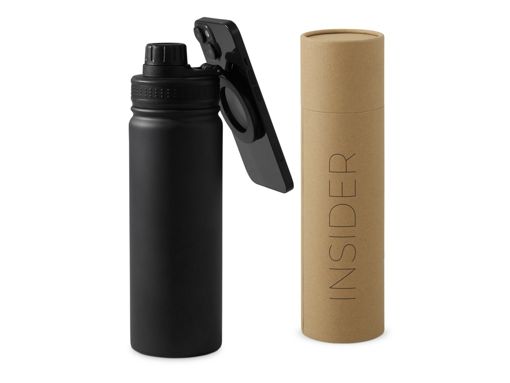 Современные технологии и стильный дизайн объединились в одной бутылке! Спортивная бутылка с магнитным держателем MagSafe поможет вам всегда держать водный баланс в норме и сделает жизнь удобнее. Благодаря магнитному держателю бутылка надежно удерживает iPhone 12 версии и новее. Магнитное крепление подходит также и для любого смартфона, т.к. в комплекте есть металлическое кольцо с клейким слоем. Кольцо наклеивается на заднюю крышку или чехол смартфона, и вы можете крепить смартфон к бутылке за секунду. Объем 600мл. Для кого эта бутылка? • Для спортсменов: Магнитное крепление позволяет следить за тренировками, слушать музыку или смотреть видео, не отвлекаясь на удерживание телефона в руках. • Для путешественников и автовладельцев • Для офисных и удаленных работников • Для всех, кто заботится об экологии Ключевые особенности: • Магнитная ручка - держатель MagSafe для iPhone и других смартфонов (если наклеить кольцо-стикер из комплекта) • Нетеряемая герметичная крышка • Сохраняет тепло до 11 часов, холод до 22 часов • Двойные стенки и вакуумная изоляция • Экологичные и безопасные материалы: пищевой пластик полипропилен и высококачественная нержавеющая сталь 304 марки