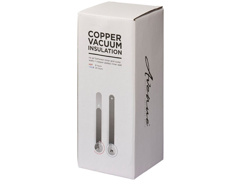 Вакуумный термос Peeta с медным покрытием. Прочный термос идеален для путешествий и поместится практически в каждый подстаканник. Выполнен из нержавеющей стали с двойными стенками и вакуумной, медной изоляцией, что позволит сохранять температуру холодных напитков до 24 часов, а горячих - до 8 часов. Конструкция также предотвращает образование конденсата снаружи. Объем 500 мл. Нержавеющая сталь.
