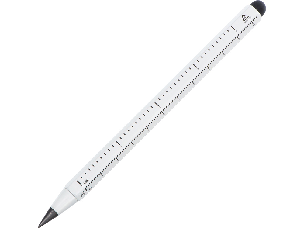 Карандаш изготовлен из переработанного алюминия. В отличие от обычных карандашей его не нужно точить, и он не пачкает руки. Наличие на корпусе двух линеек, в сантиметрах и в дюймах, позволит при необходимости моментально измерить что-либо или перевести одни единицы в другие. С обратной стороны карандаша есть стилус, которым удобно что-то делать на телефоне или планшете. • Долго служит • Не нужно точить • Наличие шкал на линейке в сантиметрах и дюймах • Стилус на обратном конце
